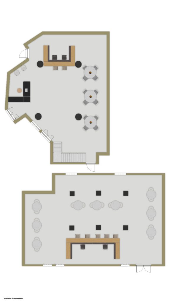 Das Hauptgebäude überzeugt durch seine solide, massiv anmutende Bauweise und erstreckt sich über zwei weitläufige Ebenen mit einer Gesamtnutzfläche von beeindruckenden ca. 1.221 m². Die Grundrisse sind geprägt von Großzügigkeit und bieten eine hohe Variabilität in der Gestaltung. Während das Erdgeschoss durch seine offenen Flächen und die ehemalige Gastronomie-Infrastruktur eine ideale Basis für moderne Event-Locations, repräsentative Showrooms oder großflächige Ateliers bietet, eröffnet das Obergeschoss zusätzliche Potenziale. Die vorhandene Bausubstanz dient dabei als Leinwand für eine umfassende Sanierung, bei der moderne Designelemente mit dem industriellen Charme des Baujahres verschmolzen werden können.