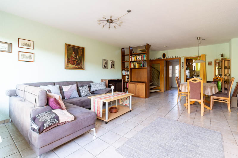 Ein architektonisches Highlight ist die elegante Wendeltreppe, die ins Obergeschoss führt. Hier erwarten Sie zwei helle, gut geschnittene Zimmer, die sich flexibel als Schlaf-, Kinder- oder Arbeitszimmer nutzen lassen. Das modernisierte Badezimmer (2008) überzeugt mit Badewanne, separater Dusche und stilvollen Fliesen. Ergänzt wird das Raumangebot durch ein Gäste-WC im Erdgeschoss sowie einen praktischen Abstellraum im Obergeschoss.