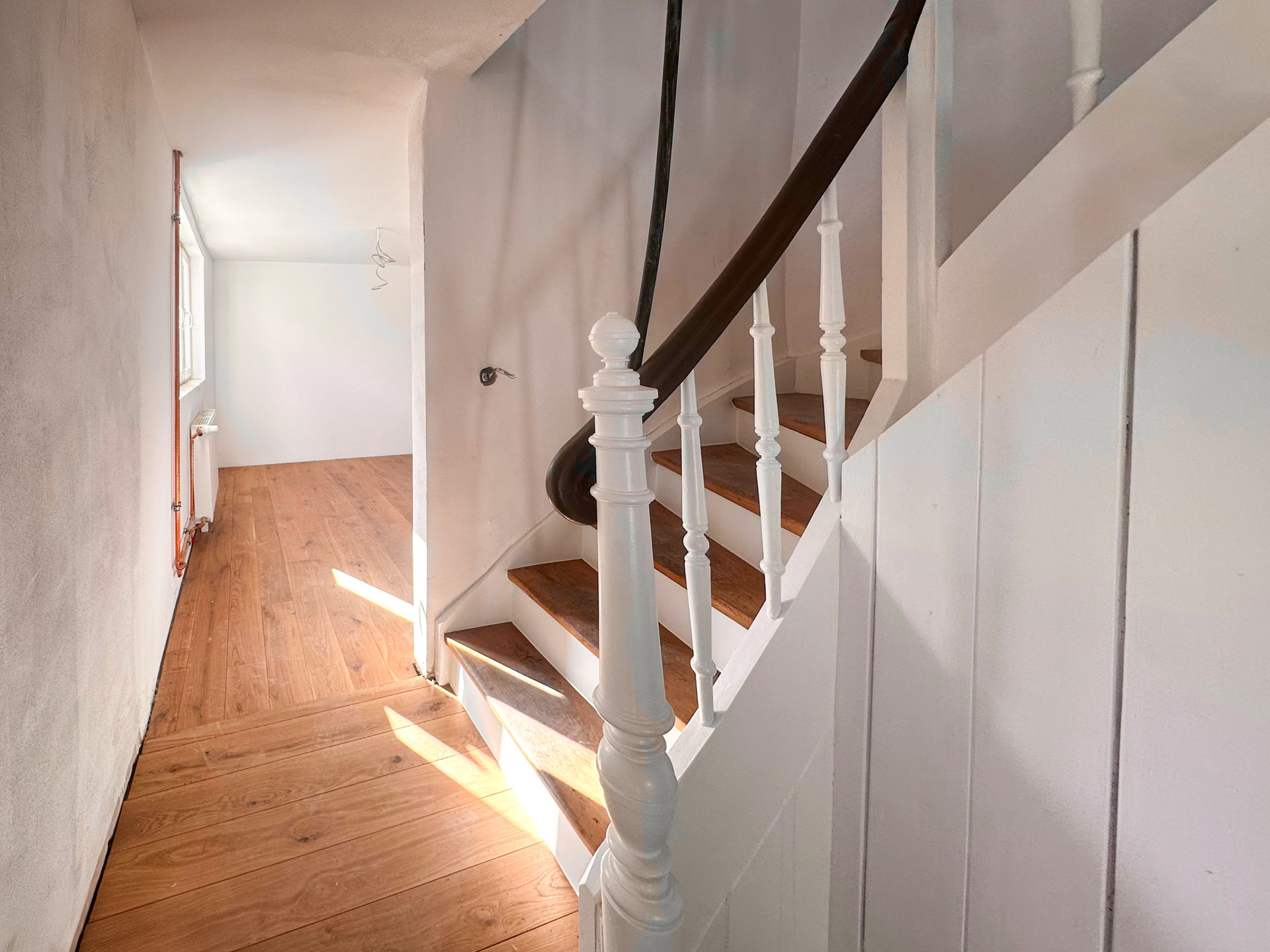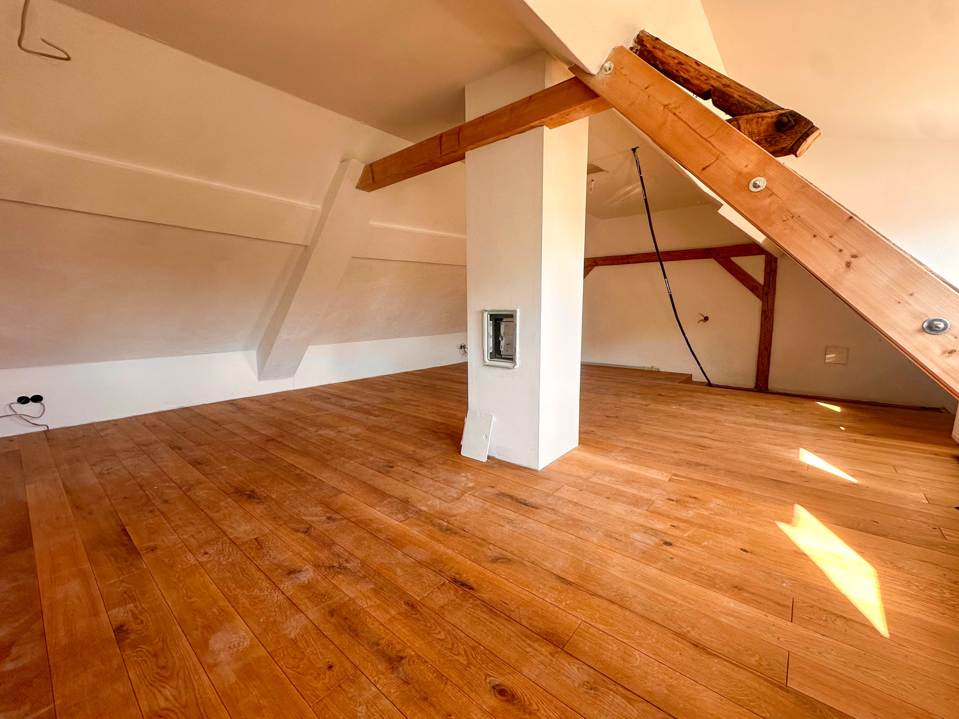 Die Wohnfläche beträgt ca. 150 m² und ist in großen Teilen bereits hochwertig saniert. In vielen Räumen wurde Echtholzboden verlegt. Der Einbau eines Kaminofens ist möglich. Das ausgebaute Dachgeschoss bietet zusätzlichen Wohnraum und vielfältige Nutzungsmöglichkeiten.