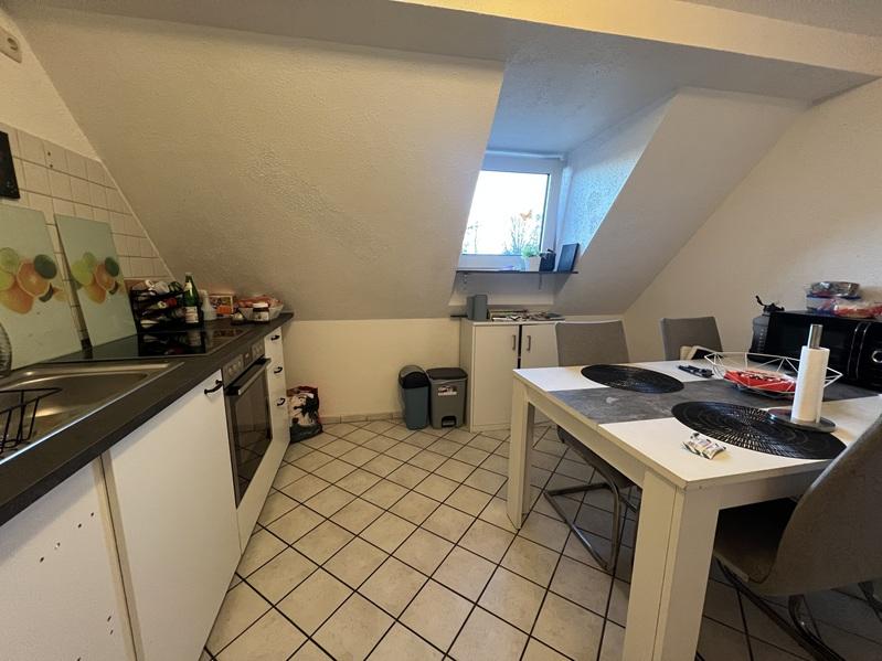 Die gemütliche Wohnung mit Dachschrägen befindet sich im Dachgeschoss (zweites Obergeschoss) des ruhigen Mehrfamilienhauses. Die Wohnfläche von circa 49 m² verteilt sich auf eine Diele, eine Küche, ein Tageslichtbadezimmer mit Badewanne und Dusche sowie ein Schlaf- und ein Wohnzimmer. Außerdem bietet ein Abstellraum am Ende des Flures zusätzlichen Stauraum.