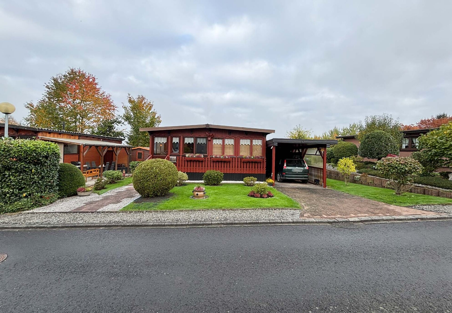 Dieses charmante Holzhäuschen wurde ca. um 1993 auf einem ca. 281 m² großen Grundstück erbaut. Die ca. 63 m² verteilen sich auf einer Ebene und ermöglichen Ihnen so ein Wohnen bis ins hohe Alter. Über wenige Treppenstufen gelangen Sie in die Diele bzw. in den Wintergarten des Hauses. Von dort aus erreichen Sie sämtliche Räumlichkeiten der Immobilie. Das kompakte Badezimmer ist bereits mit einer Dusche mit niedriger Einstiegshöhe ausgestattet. Der liebevoll angelegte Garten der Immobilie lädt zum Verweilen ein. Ihr Fahrzeug kann im vorhandenen Carport untergestellt werden. Das Haus steht auf einem Pachtgrundstück. Die jährliche Pacht beträgt derzeit ca. 3.596,80 €. Ein Erstwohnsitz ist hier möglich und MagentaZuhause ist mit bis zu 250 MBit/s im Download und bis zu 40 MBit/s im Upload verfügbar.