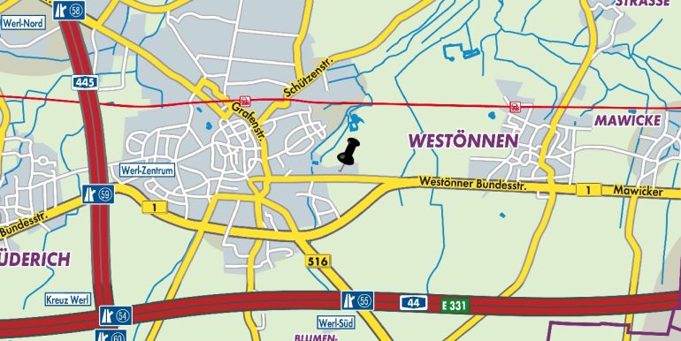 Das Objekt liegt in einem kleinen Gewerbegebiet in östlicher Lage von Werl. Die unmittelbare Nähe zur B1, sowie A44 und A445 zeichnet diese Immobilie aus.