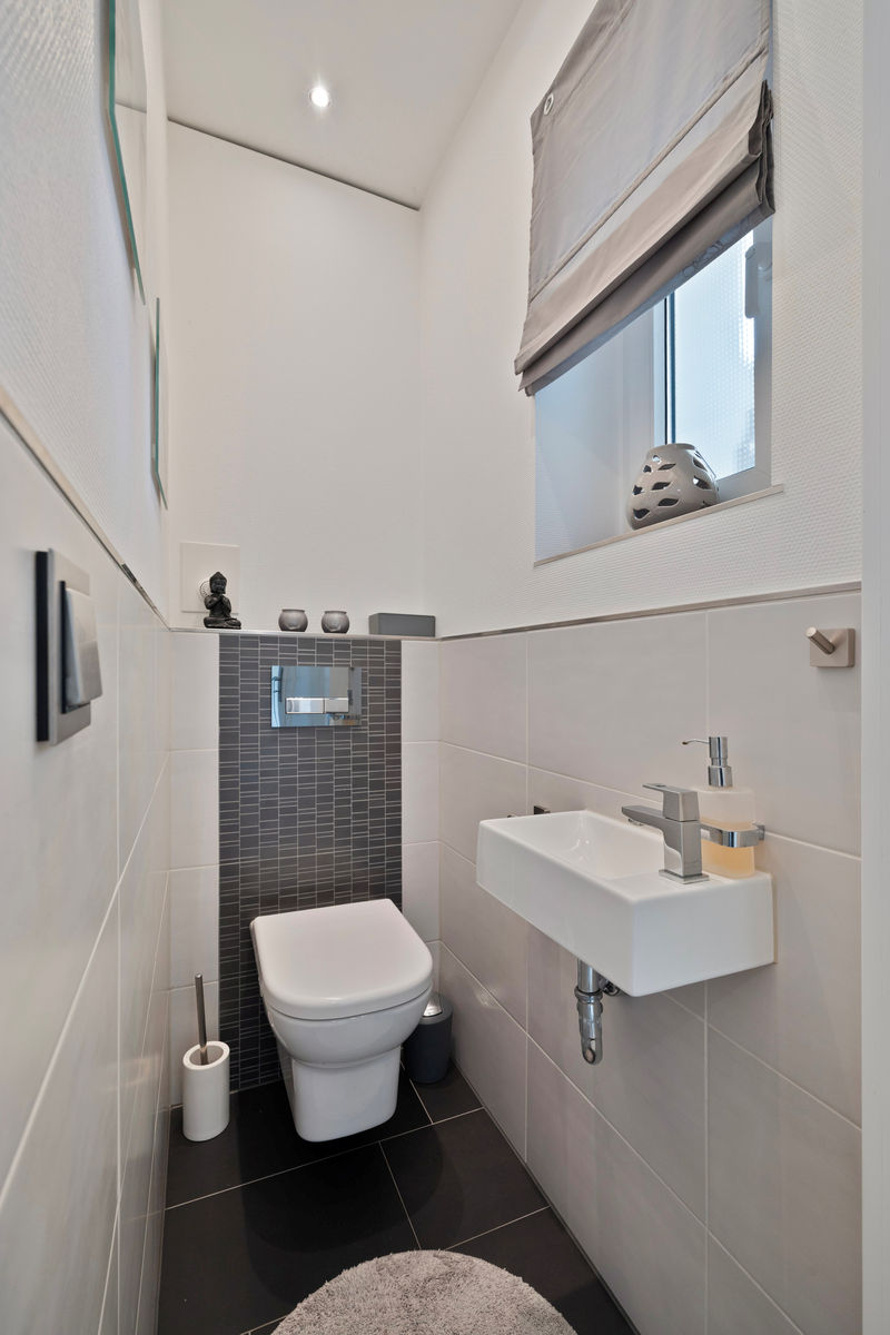 - Badausstattung: Dusche, Badewanne, Fenster im Badezimmer