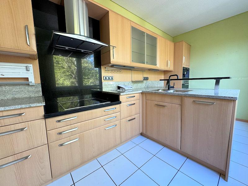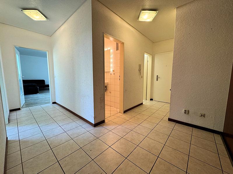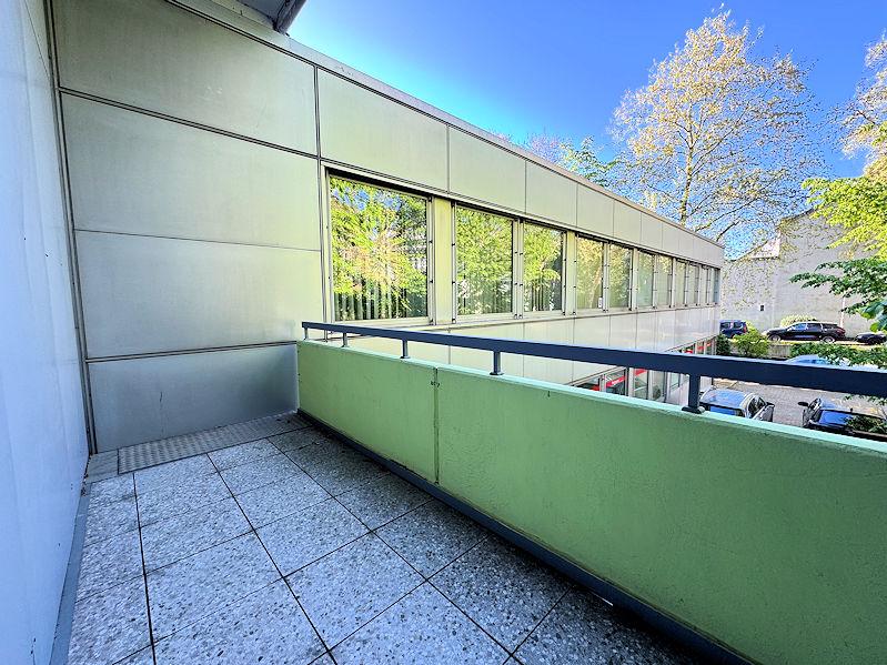 Die Wohnung mit Balkon liegt im 1. Obergeschoss. Der vorhandene Aufzug fährt vom Keller bis ins 3. Obergeschoss, hält jedoch nicht im 1. Obergeschoss.
