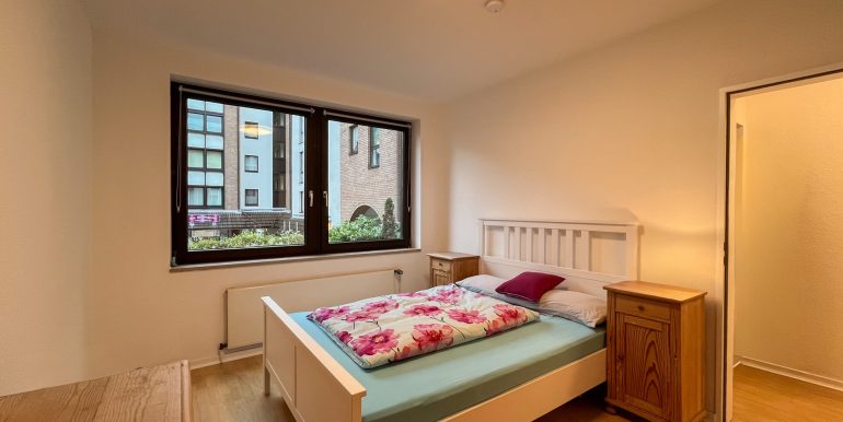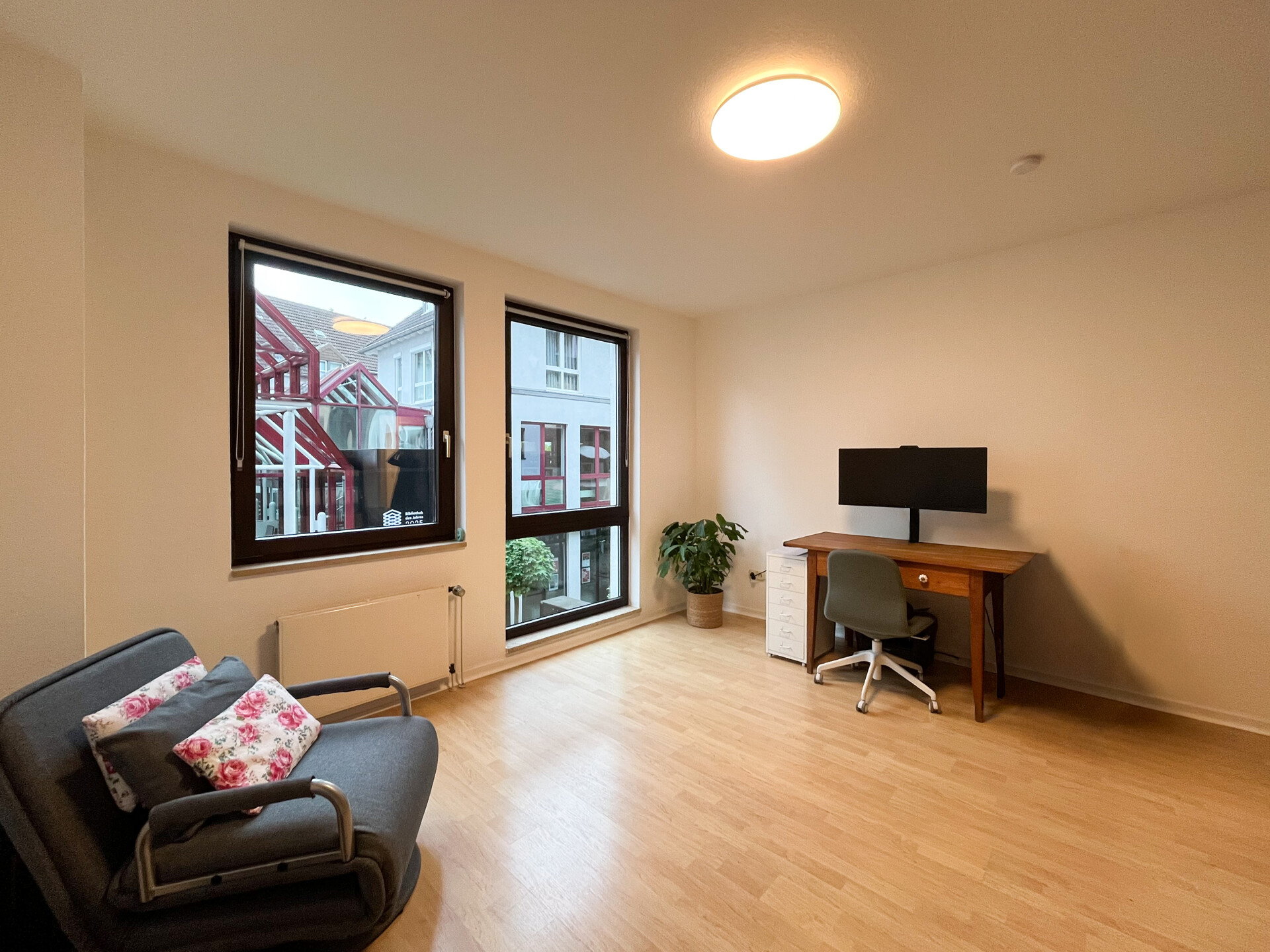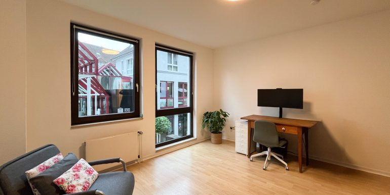 Das Schlafzimmer ist ruhig gelegen und bietet genügend Raum für ein großes Bett und einen Kleiderschrank. Ein weiteres Zimmer eignet sich flexibel als Kinderzimmer, Gästezimmer oder Arbeitsbereich/Homeoffice.