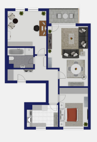 Diese ca. 82 m² große Wohnung bietet eine durchdachte Raumaufteilung und ein angenehmes Wohnambiente. Der großzügige Wohn- und Essbereich ist hell gestaltet und bildet den Mittelpunkt der Wohnung.