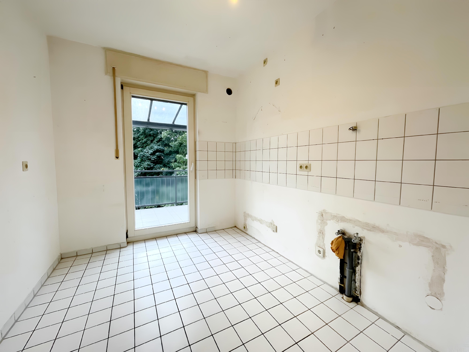 – Heller Fliesenboden in der Küche und im Badezimmer