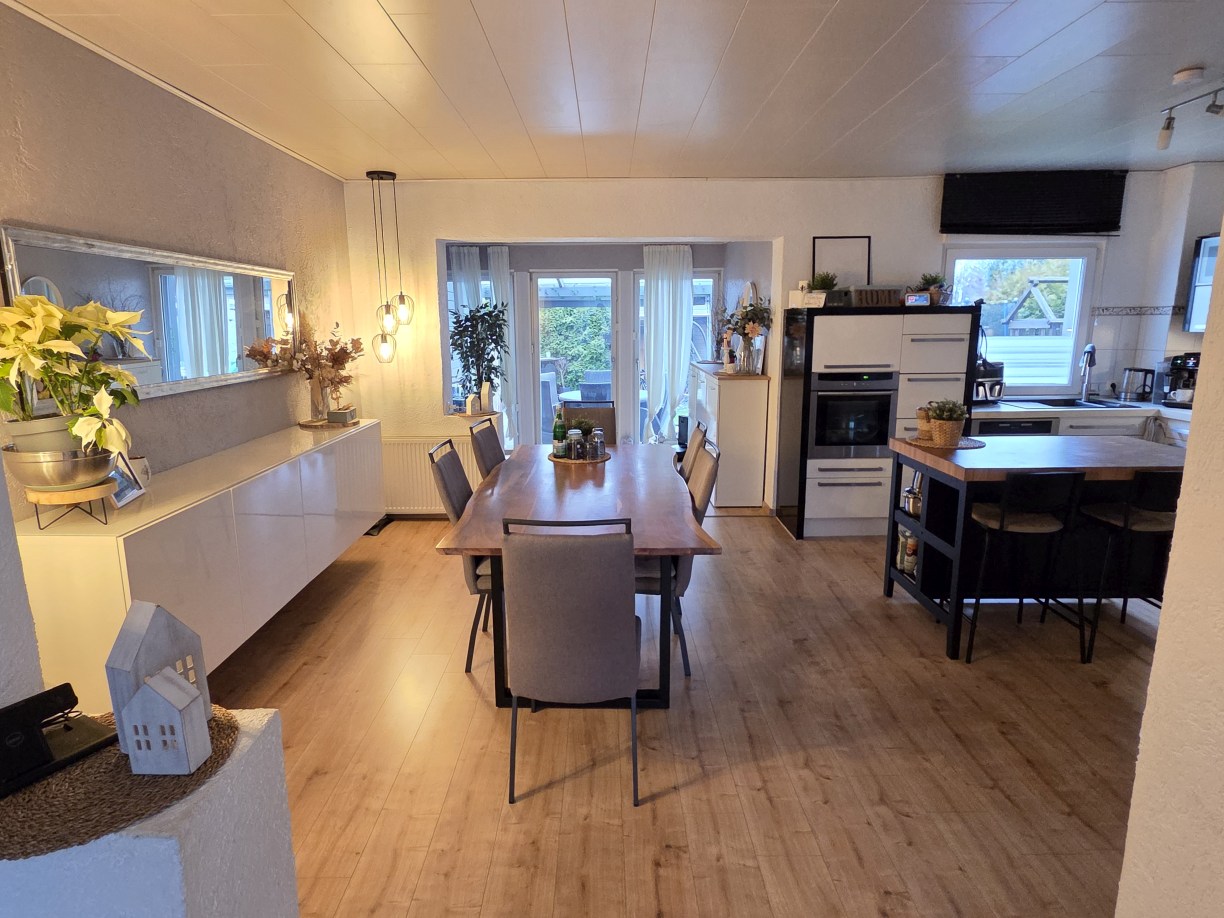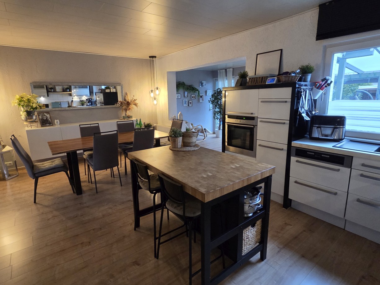 Schickes, freistehendes Einfamilienhaus, Bj. 1955 – von innen komplett modernisiert, großzügige Raumaufteilung mit satten 198 m² Wohnfläche zzgl. ca. 76 m² Nutzfläche im Untergeschoss, Massivbauweise, 1 1/2-geschossig mit zusätzlich ausgebautem Spitzboden, insgesamt 5 Schlafräume plus Gäste-Zimmer im UG, großzügige, offene Küche und Wohnbereich mit insgesamt ca. 61 m² – EBK bereits im Kaufpreis enthalten.