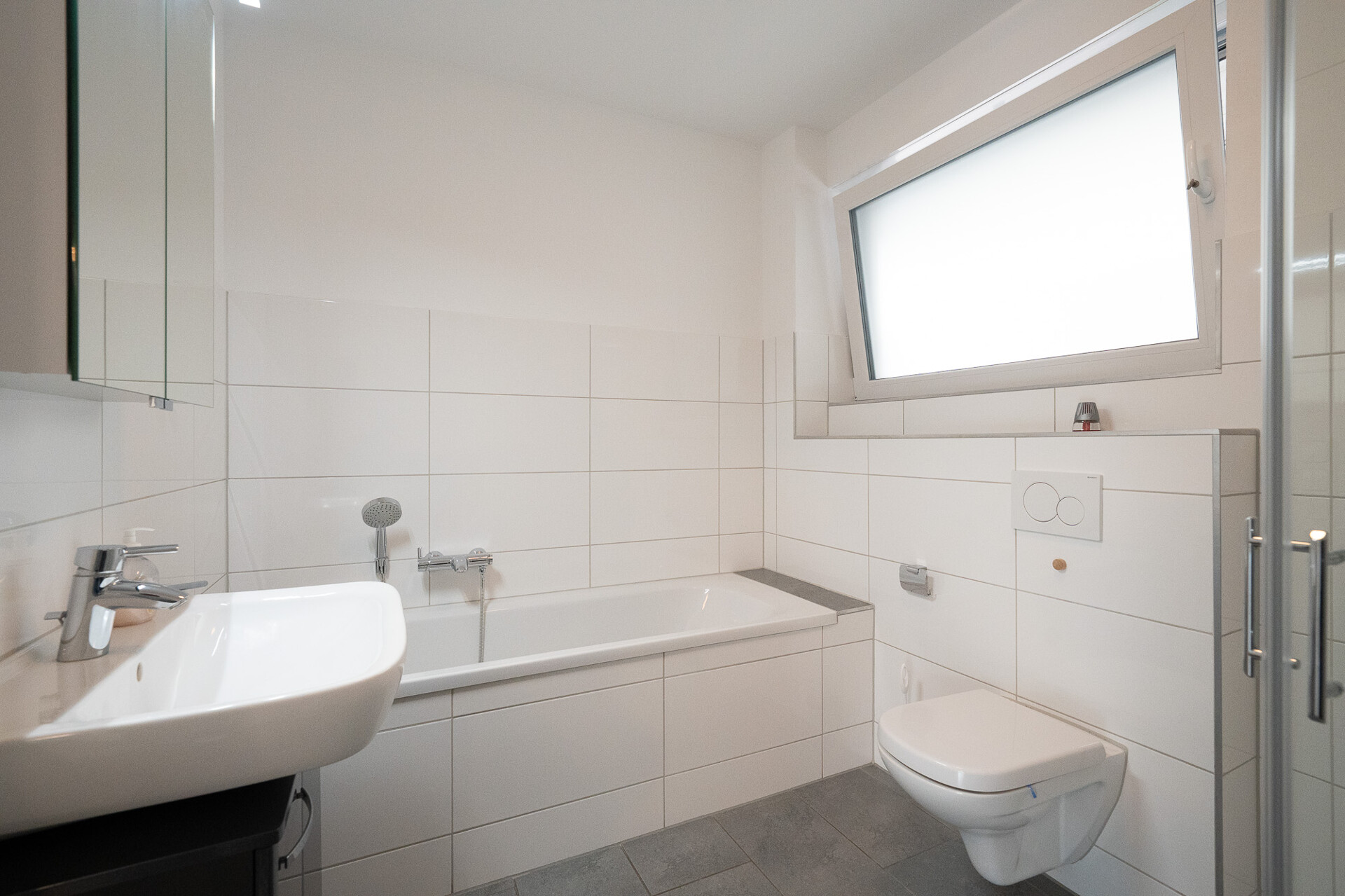 – Stilvolles Tageslichtbad – ausgestattet mit Badewanne und moderner Dusche