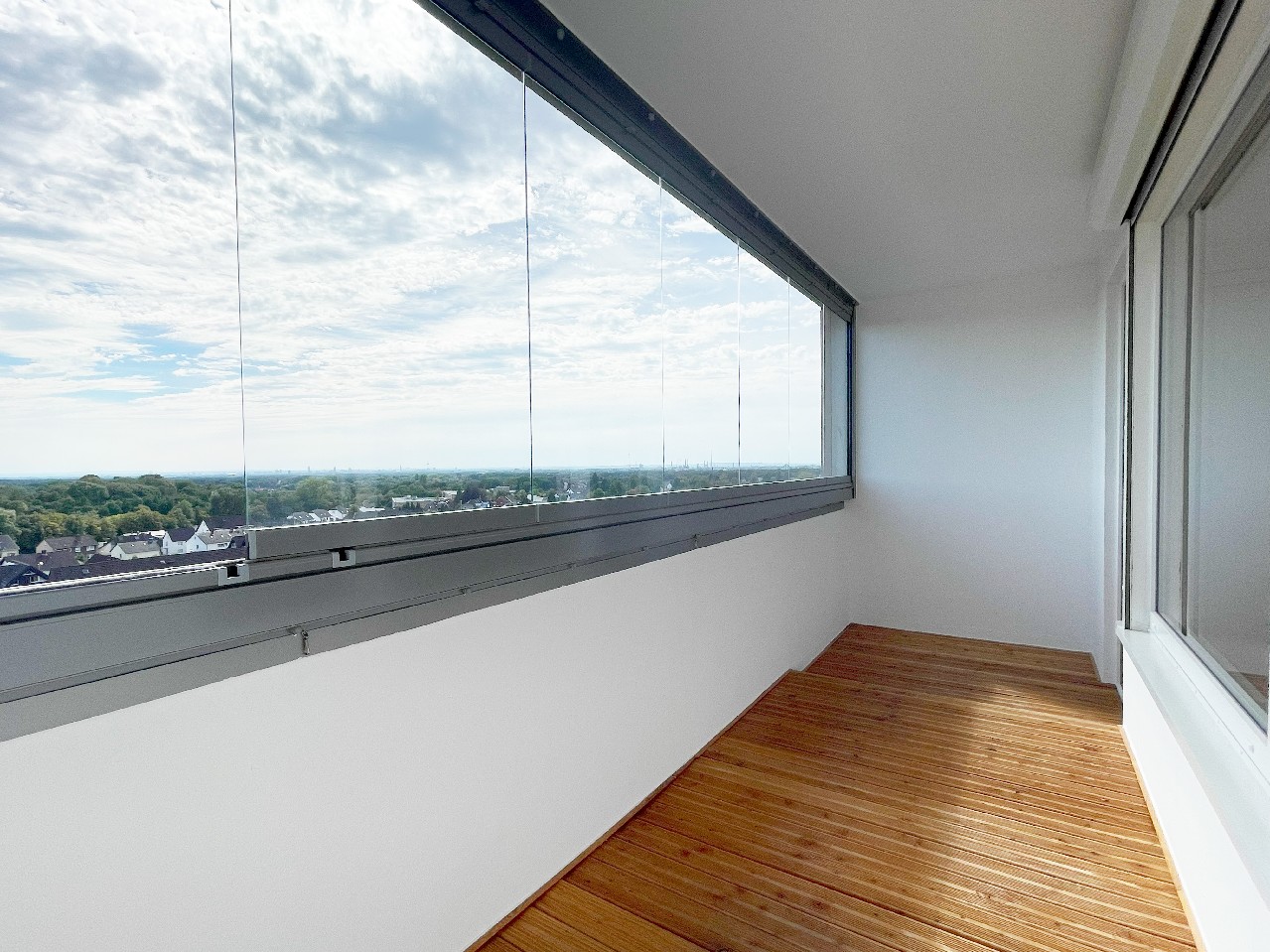 – Loggia mit neuem Bodenbelag und aufwendigem Windschutz aus Glas