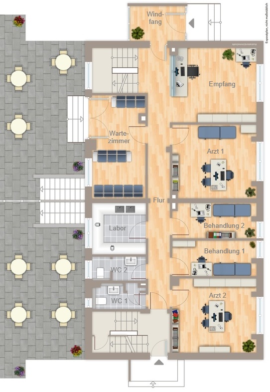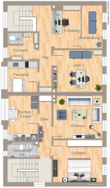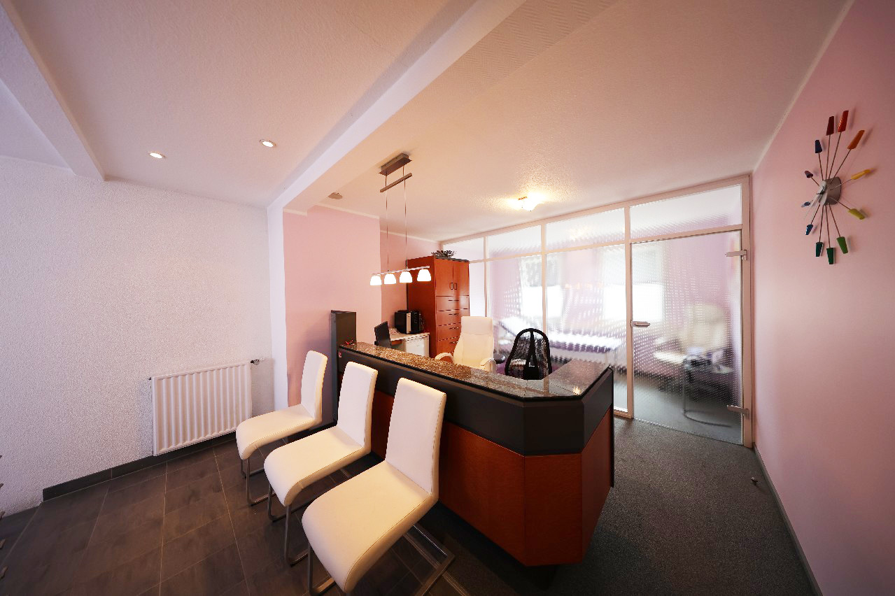 – Erdgeschoss sowie ein Teil des Obergeschosses ist eine gut eingeführte Arztpraxis, die auf einer Gesamtfläche von ca. 180 m² untergebracht ist.