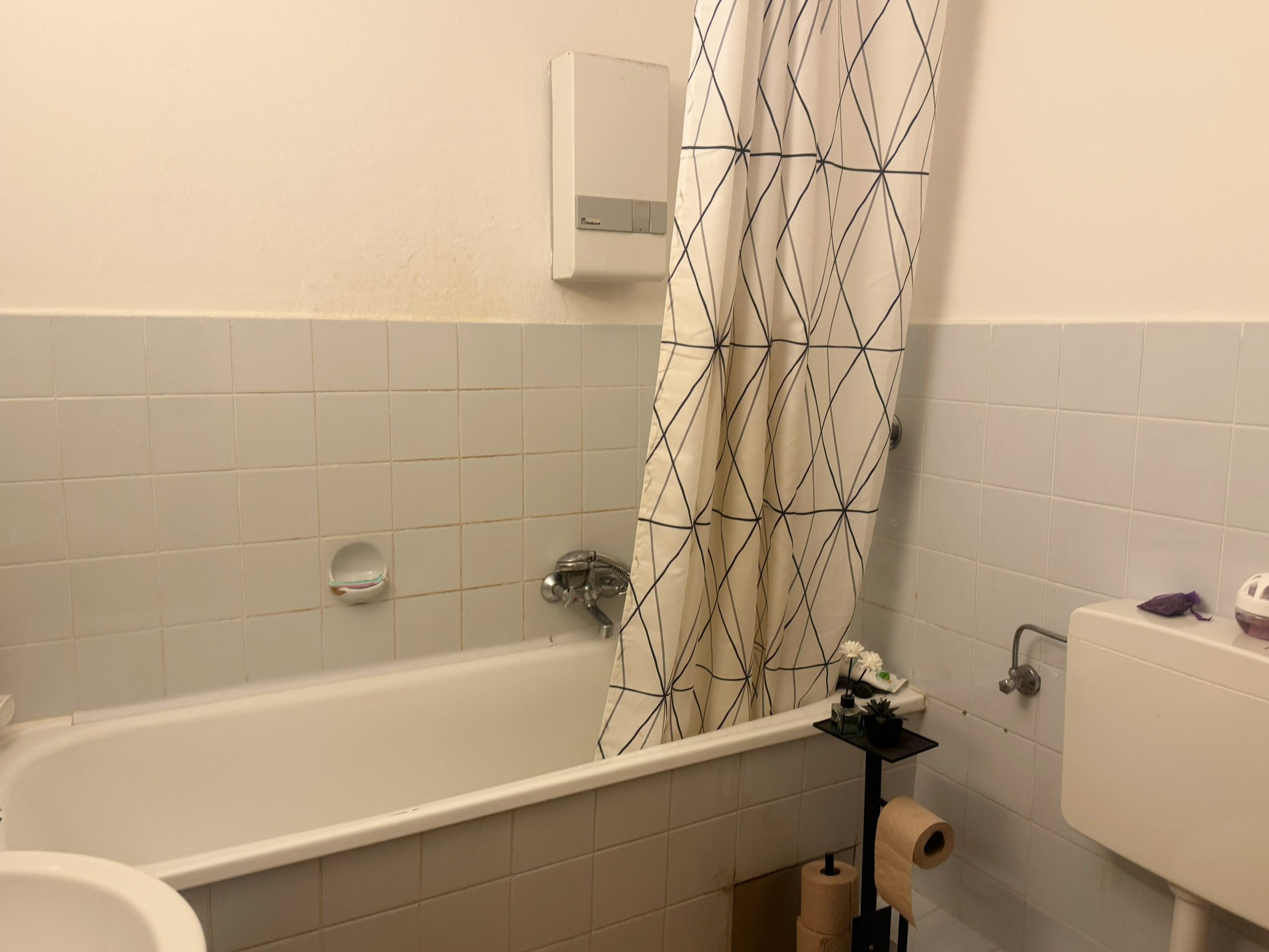 Die Küche bietet ausreichend Platz für den Anschluss einer Waschmaschine. Die Warmwasserversorgung erfolgt dezentral.