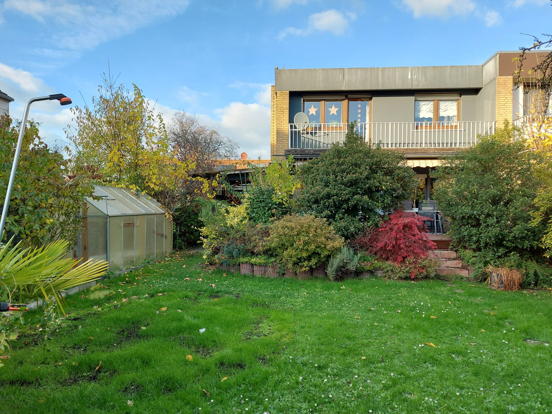 – Garten mit Teich und Gewächshaus