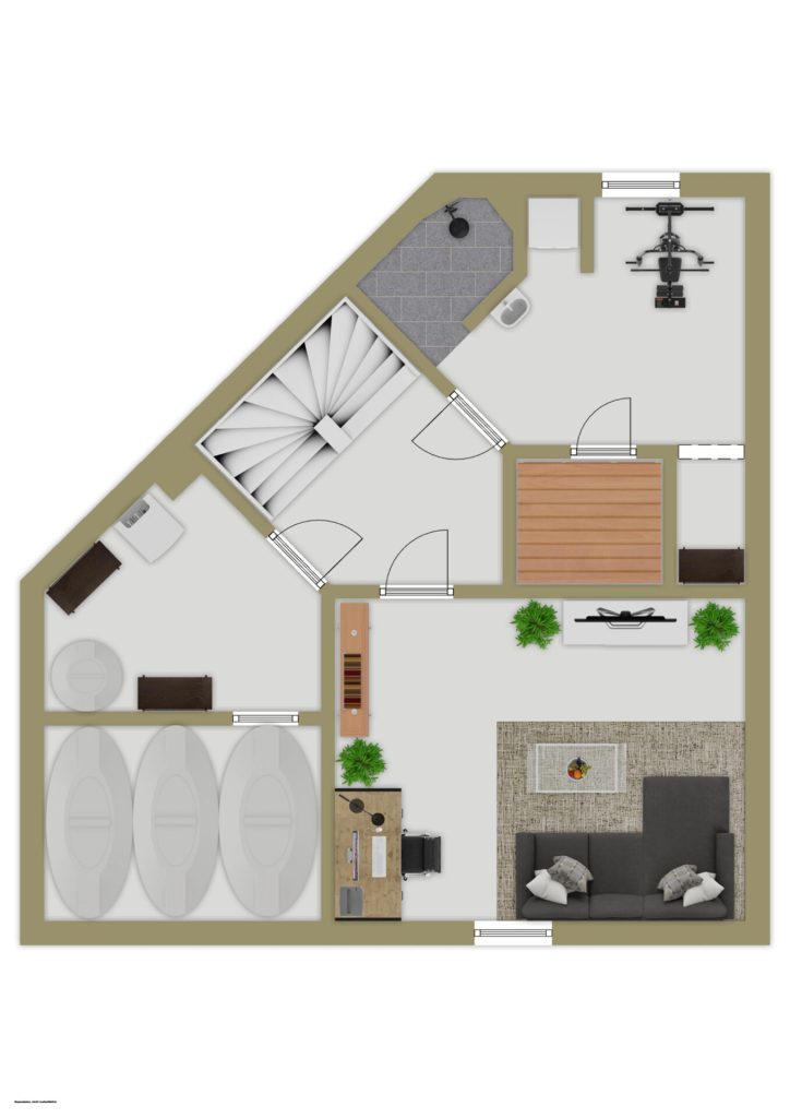 Ein absolutes Highlight erwartet Sie im komplett gefliesten und rund 2,40 m hohen Kellergeschoss: eine private Wellnessoase mit Sauna und Schwalldusche – Ihr persönlicher Rückzugsort zum Entspannen und Auftanken.