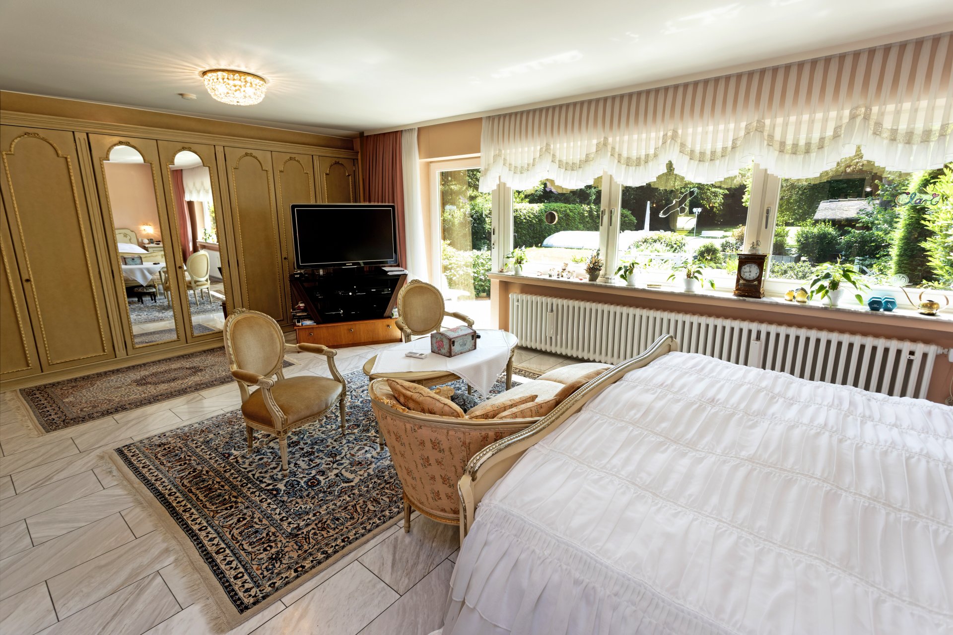Sanitärbereiche: Haupthaus Erdgeschoss: Gäste-WC mit Fenster sowie Tageslichtbad mit Whirlpool- Badewanne und Dusche/ Dachgeschoss Tageslichtbad mit Dusche und Whirlpoolwanne, weiteres Tageslichtbad mit Dusche/ separate Einliegerwohnung: Gäste-WC und innenliegendes Wannenbad, Kellergeschoss: Weitere Dusche und separater Whirlpool sowie Gäste-WC