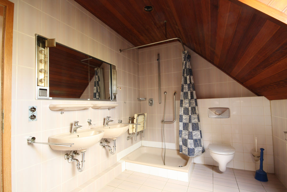 - Badausstattung: Dusche, Badewanne, Fenster im Badezimmer, Pissoir
