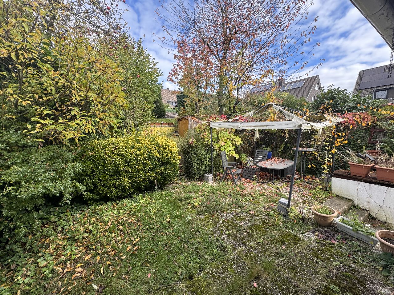Bauweise: Einseitig angebaut, durch die leichte Hanglage straßenseitig 2 ½ geschossig, Gartenseitig 1 ½ geschossig. Im Bauwich befindet sich eine Garage mit
