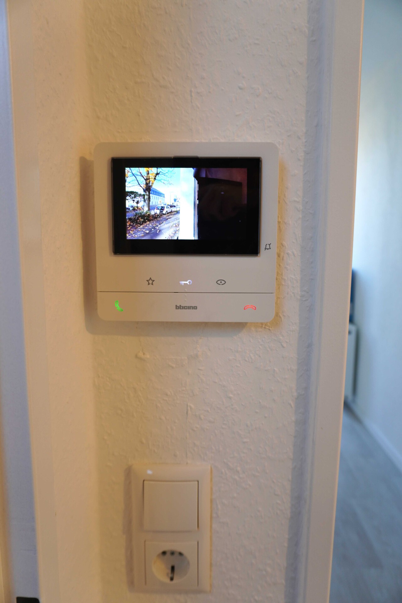 Ein sonniger Balkon lädt zum Entspannen ein, während die moderne Video-Gegensprechanlage zusätzliche Sicherheit bietet. Dank der optimalen Lage in der dritten Etage des Hauses finden Sie hier eine ruhige Rückzugsmöglichkeit mit Weitblick.