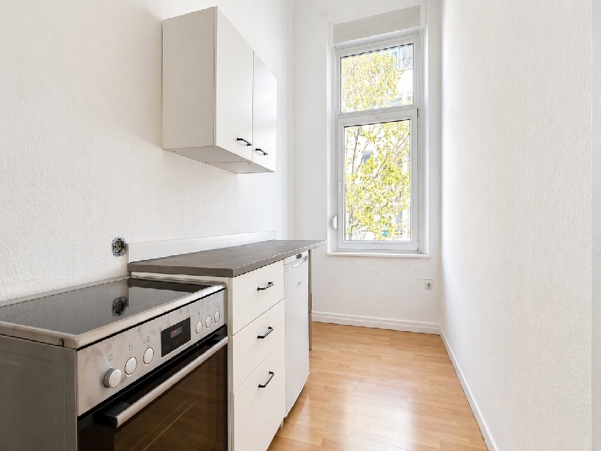Die Küche ist über einen der Wohnräume erreichbar und bietet ausreichend Platz für eine funktionale Einrichtung.