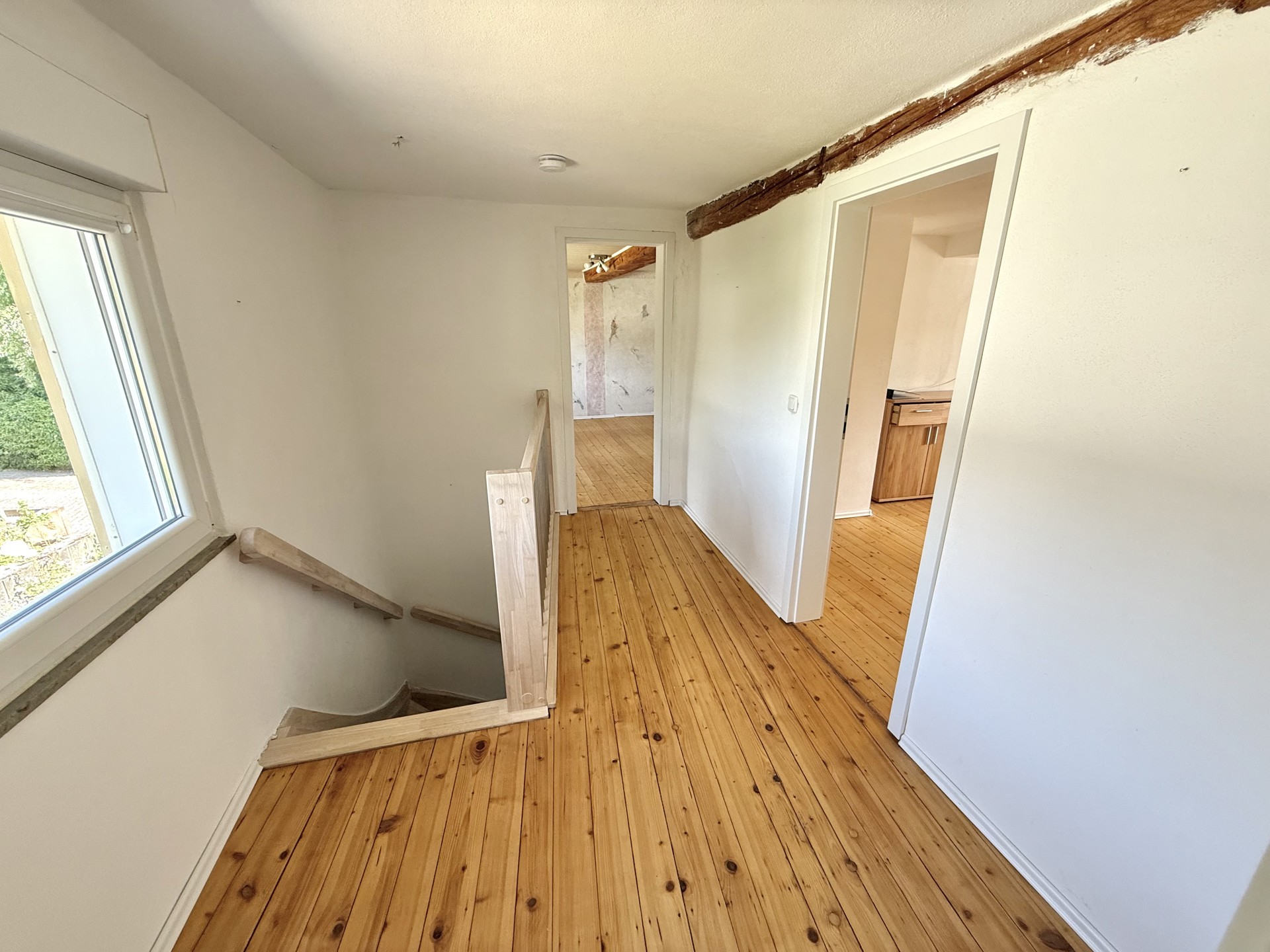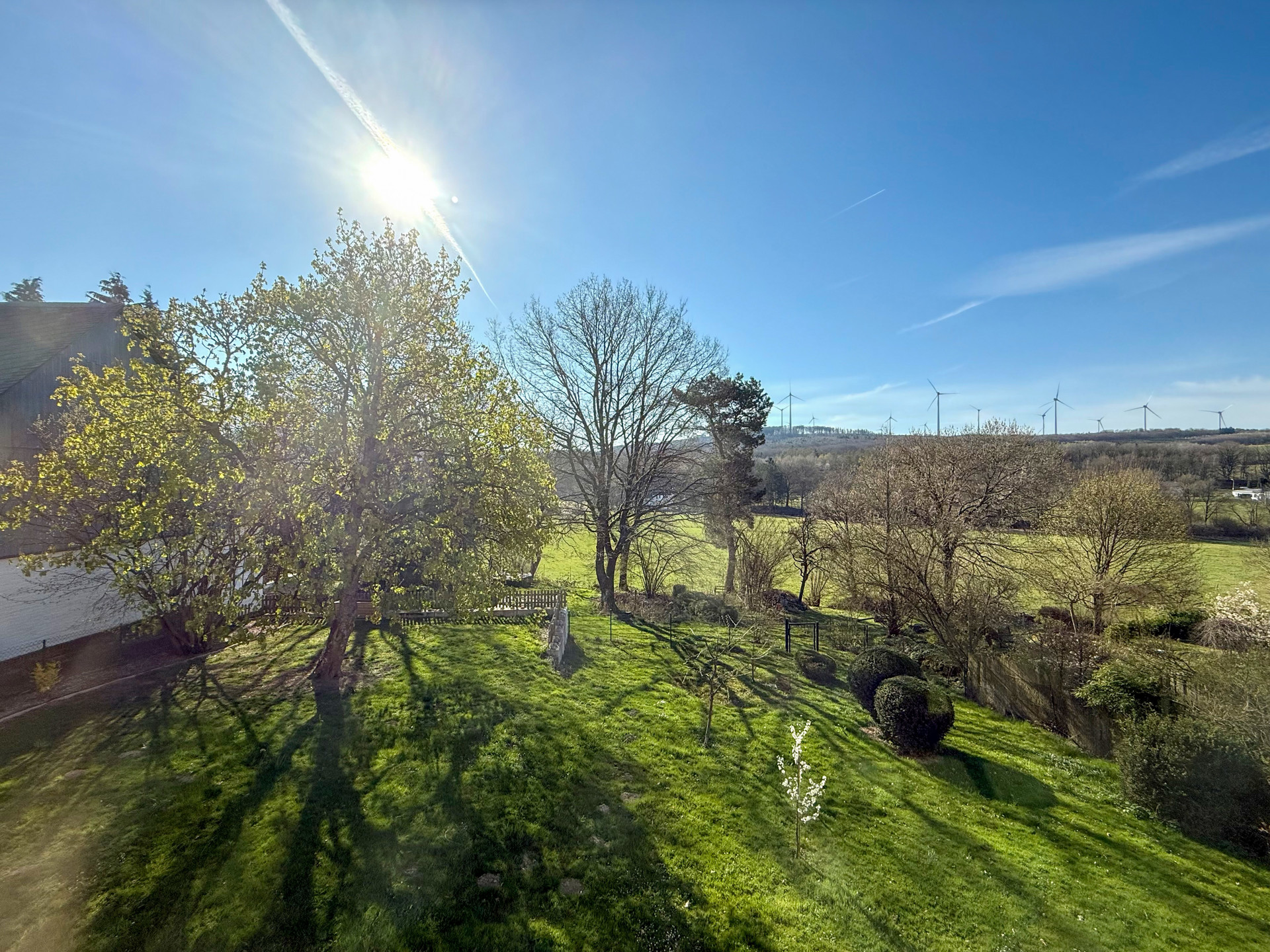 Das ehem. Fachwerkhaus aus ca. 1873 verbindet historischen Charme mit modernem Wohnkomfort & bietet ca. 152 m² Wfl.. Das Grundstück mit rd. 1.816 m² liegt am Ortsrand und eröffnet einen unverbaubaren Weitblick. Es verfügt im unteren Bereich über eine abgetrennte Fläche mit Törchen und einem Hühnerstall – Tierhaltung ist ggf. nach Prüfung der örtlichen Vorgaben möglich. Das Haus wurde im Inneren bereits umfangreich saniert und überzeugt mit einem aufgearbeiteten Dielenboden. Im EG empfängt Sie ein einladender Eingangsbereich, der in die Wohnküche und das Wohn-/Esszimmer übergeht. Das Gäste-WC sowie das Duschbad wurden 2023 komplett erneuert und mit Fußbodenheizung ausgestattet. Der große Heizungsraum schafft zusätzlichen Stauraum. Im OG befinden sich drei Schlafzimmer sowie ein Wintergarten, der durch den Austausch der Fenster weiter aufgewertet werden kann. Ein weiteres, ebenfalls in 2023 erneuertes Bad mit Whirlpool und Fußbodenheizung sorgt für besonderen Komfort. Der Speicher ist ausbaubar. Ein Holzschuppen und eine Garage bieten zusätzliche Nutzfläche.
