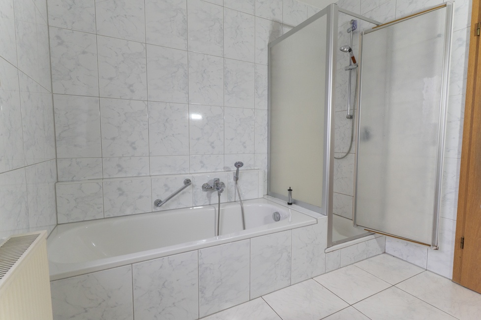 Bad: Tageslichtbad mit Wanne und Dusche, WC, Waschbecken