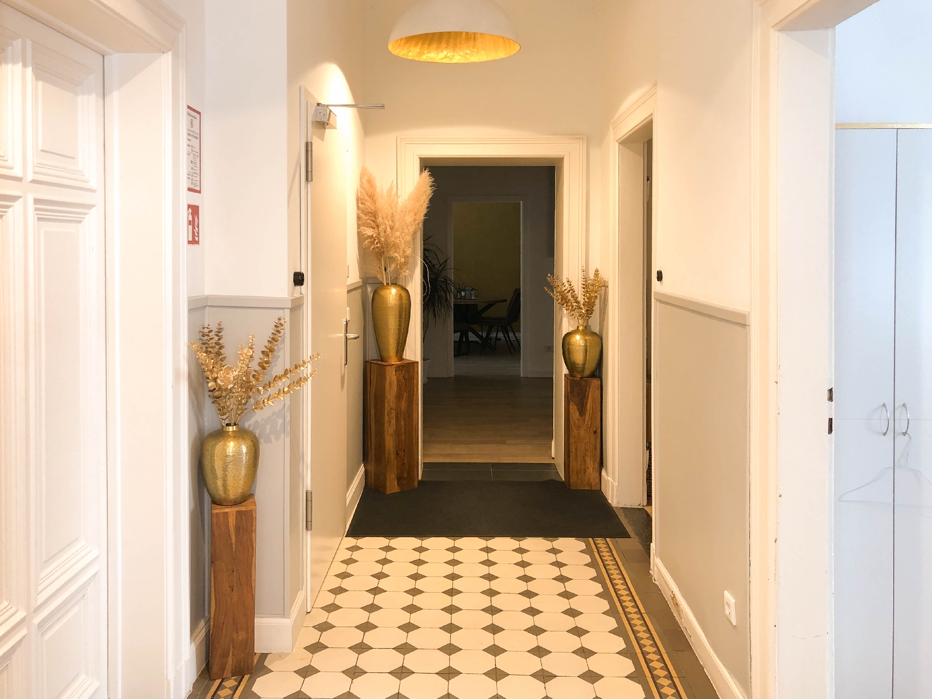 Willkommen in Ihrem neuen Zuhause – einer einzigartigen Wohnung, die Geschichte und modernen Komfort auf harmonische Weise verbindet. Diese charmante 4-Zimmer-Wohnung erstreckt sich über 150 m² und befindet sich im Erdgeschoss eines liebevoll restaurierten Gebäudes aus dem Jahr 1910. Sie betreten die Wohnung durch einen separaten Eingang, der Ihnen ein Gefühl von Privatsphäre und Eigenständigkeit vermittelt. Sobald Sie die Tür öffnen, werden Sie von den geräumigen, hohen Räumen empfangen, die mit einem stilvollen Vinylboden ausgestattet sind, der sowohl elegant als auch pflegeleicht ist. Die großzügigen Fenster lassen viel Tageslicht herein und schaffen eine einladende Atmosphäre. Die Wohnung verfügt über insgesamt 4 Zimmer, die vielseitig genutzt werden können – ob als Schlafzimmer, Arbeitszimmer oder Gästezimmer, hier sind Ihrer Kreativität keine Grenzen gesetzt. Die Küche und das Badezimmer runden das Raumkonzept ab. Ein besonderes Highlight ist die Terrasse, die Ihnen direkten Zugang zu dem Garten bietet. Hier können Sie entspannen oder im Grünen Ihre eigenen kleinen Gartenprojekte verwirklichen. Ein zusätzliches Gäste-WC sorgt dafür, dass auch Ihre Besucher sich wohlfühlen, während die restlichen sanitären Einrichtungen durchdacht in die Wohnräume integriert sind. Die Kombination aus historischem Charme und modernen Annehmlichkeiten macht diese Wohnung zu einem idealen Rückzugsort für Familien, Paare oder kreative Köpfe, die den urbanen Lebensstil schätzen. Lassen Sie sich von der besonderen Atmosphäre dieser Wohnung verzaubern und erleben Sie das Beste aus beiden Welten – den nostalgischen Charme eines Bauwerks aus dem frühen 20. Jahrhundert und den Komfort einer modernen Wohnumgebung. Ihr neues Zuhause wartet auf Sie! Es stehen Ihnen zusätzlich zwei Stellplätze á 30,00 EUR zur Verfügung.