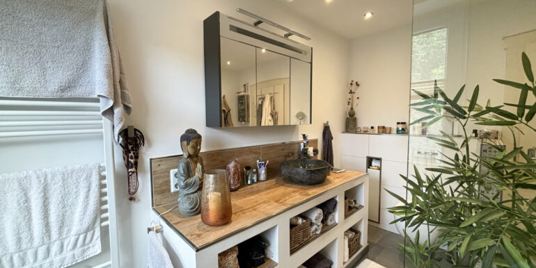 Dieses zauberhafte Fachwerkhaus bietet den perfekten Rückzugsort für alle, die eine Immobilie in einem überwiegend exzellenten Zustand und mit viel Liebe zum Detail suchen. Das Erdgeschoss des Hauses besticht durch seine großzügigen und lichtdurchfluteten Räume. Im Anbau befindet sich ein gemütlicher Wintergarten, der dank der bodentiefen Fenster den Blick in den traumhaften Garten freigibt. Hier sorgt eine Fußbodenheizung auch an kalten Tagen für wohlige Wärme. Das luxuriöse Badezimmer im Erdgeschoss lässt keine Wünsche offen: Eine bodentiefe Regendusche, eine Badewanne und hochwertige Materialien bieten Wellness-Feeling pur. Der offene Wohnbereich wird durch einen stilvollen Kamin komplettiert, der in den Wintermonaten für behagliche Stunden sorgt. Die moderne Küche ist das Herzstück des Hauses. Ausgestattet mit einer großzügigen Kochinsel und einer Theke, lädt sie zu geselligen Kochabenden und kulinarischen Highlights ein. Das Obergeschoss befindet sich in einem gepflegten Zustand, bedarf jedoch einer Renovierung, um das Potenzial des Hauses voll auszuschöpfen. Der geräumige Dachboden bietet weiteres Ausbaupotenzial, um zusätzlichen Wohnraum zu schaffen – ideal für ein weiteres Schlafzimmer, ein Arbeitszimmer oder einen Hobbyraum.