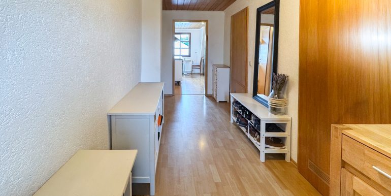 Die Räumlichkeiten bestechen besonders durch die naturbelassenen Holzdecken, welche der Wohnung eine besondere Atmosphäre verleihen.