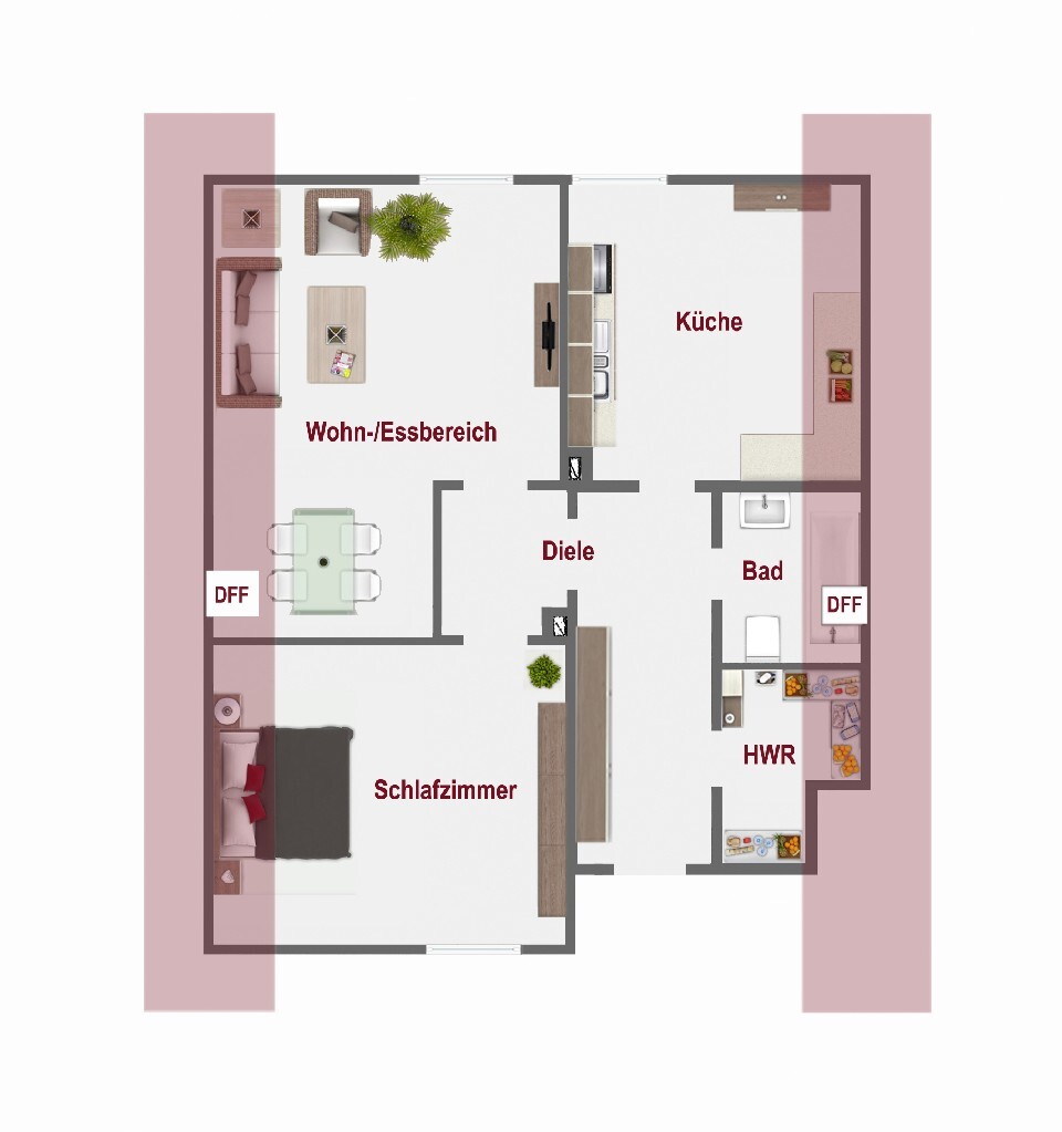 Die hier angebotene 2-Zimmer Wohnung befindet sich im Dachgeschoss eines ehemaligen Bauernhauses mit 4 Parteien und hat eine Wohnfläche von ca. 58 m². Diese teilt sich in einen Wohn-/ Essbereich, eine Küche, ein Schlafzimmer, ein Badezimmer und einen Abstellraum auf.