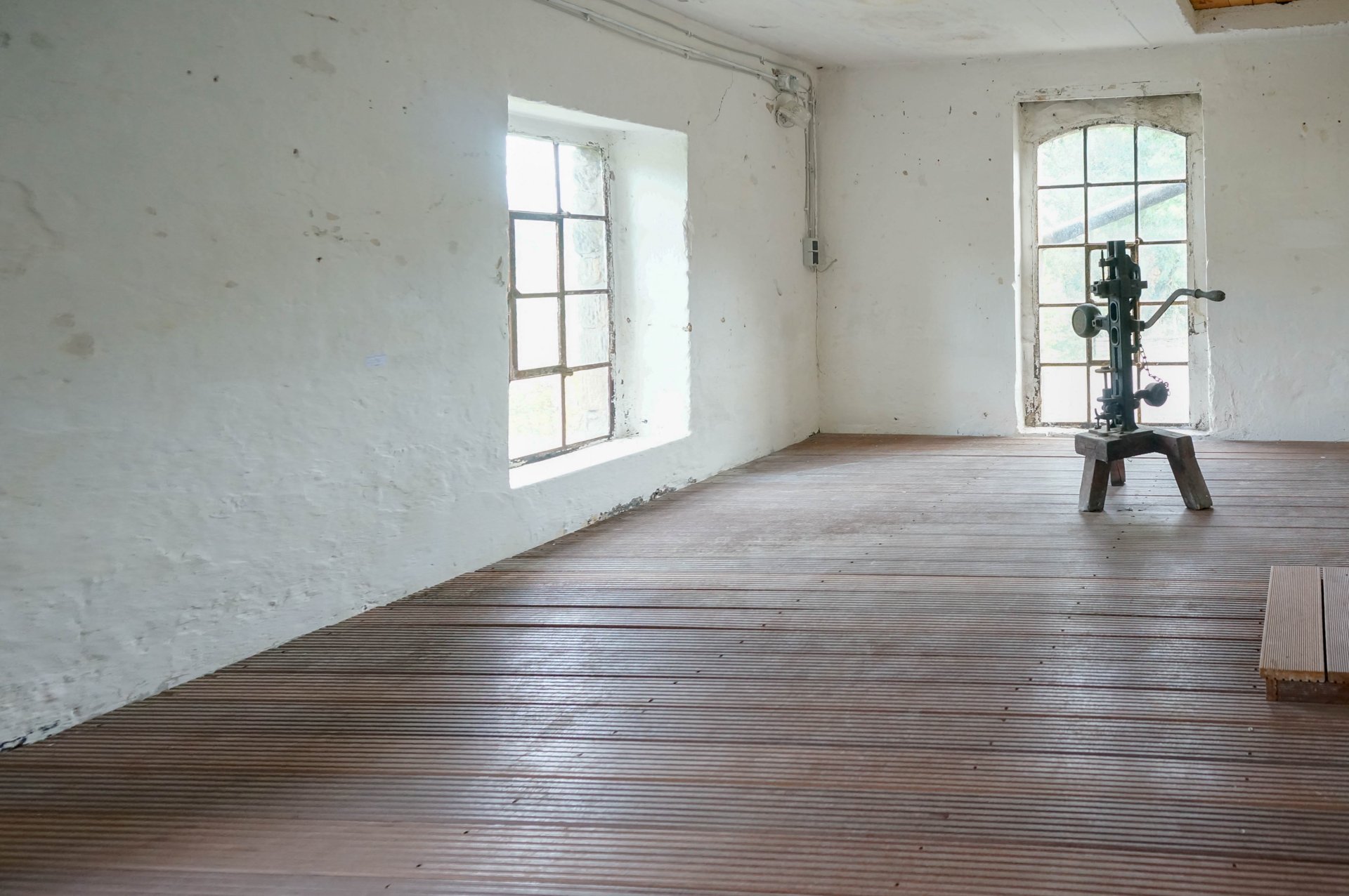 Eine besondere, denkmalgeschützte Gewerbefläche in einer ehemaligen Kornbrennerei mit historischem Charme auf mehreren Ebenen: Hier verschmilzt industrielle Geschichte mit gegenwärtiger Kunst. Offene, lichtdurchflutete Räume auf unterschiedlichen Ebenen bieten flexible Nutzungsmöglichkeiten. Sei es als Galerie oder auch als Atelier.