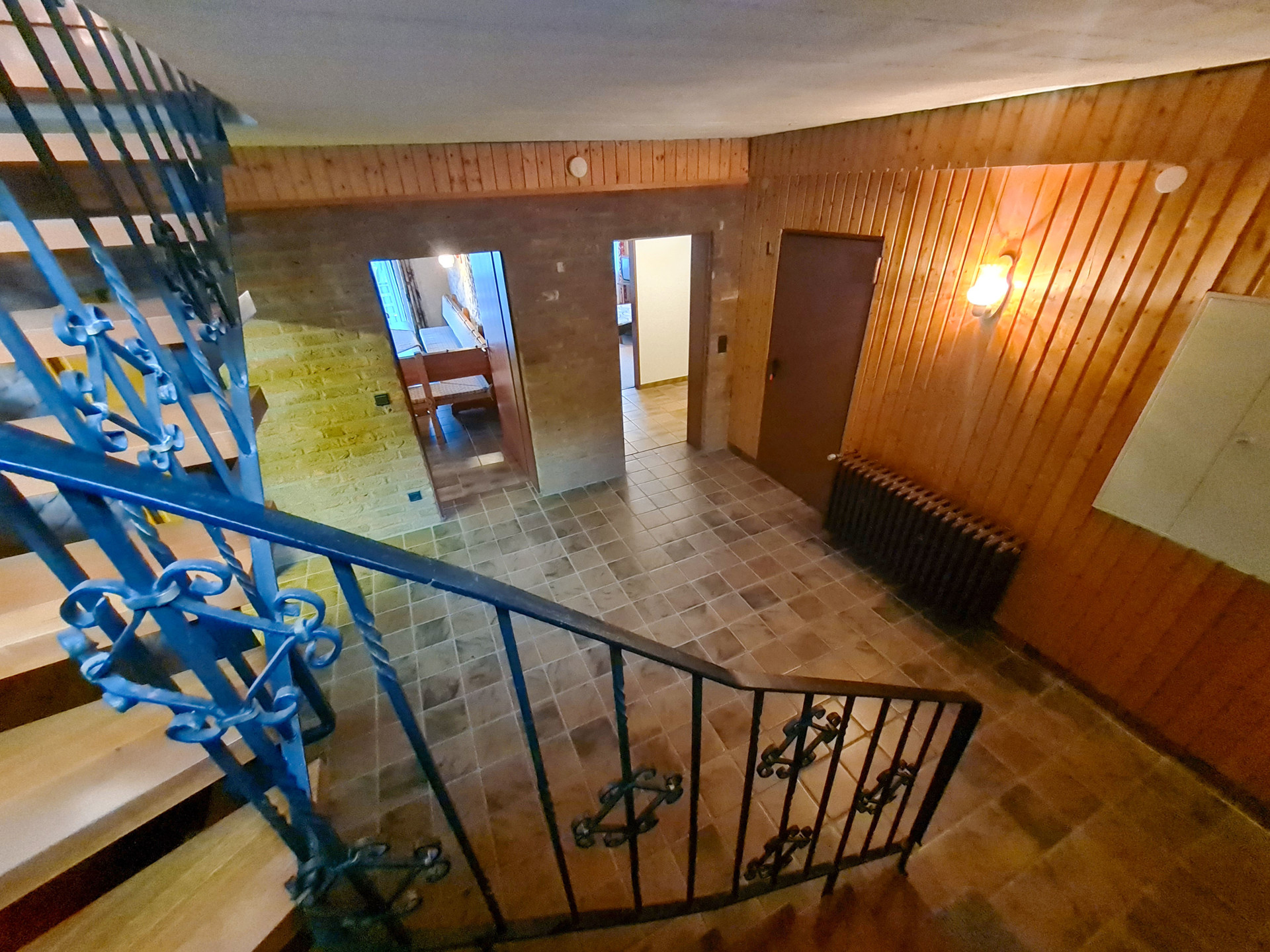 – Böden mit Fliesen und Teppich ausgelegt