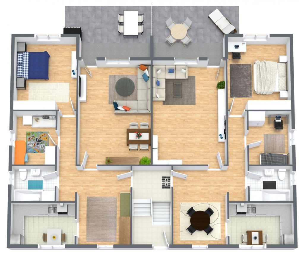 Die Gesamtwohnfläche beträgt ca. 435,33 m² und verteilt sich auf vier 3-Zimmer-Wohnungen sowie zwei 2-Zimmer-Wohnungen. Sämtliche Einheiten verfügen über funktionale Grundrisse mit gut nutzbaren Raumgrößen und sind jeweils mit Terrasse, Balkon oder Loggia ausgestattet. Die beiden Erdgeschosswohnungen bieten zudem einen direkten Zugang zum Garten. Die Wohnungen im Dachgeschoss profitieren von einer angenehmen Raumhöhe und einer guten Belichtung.