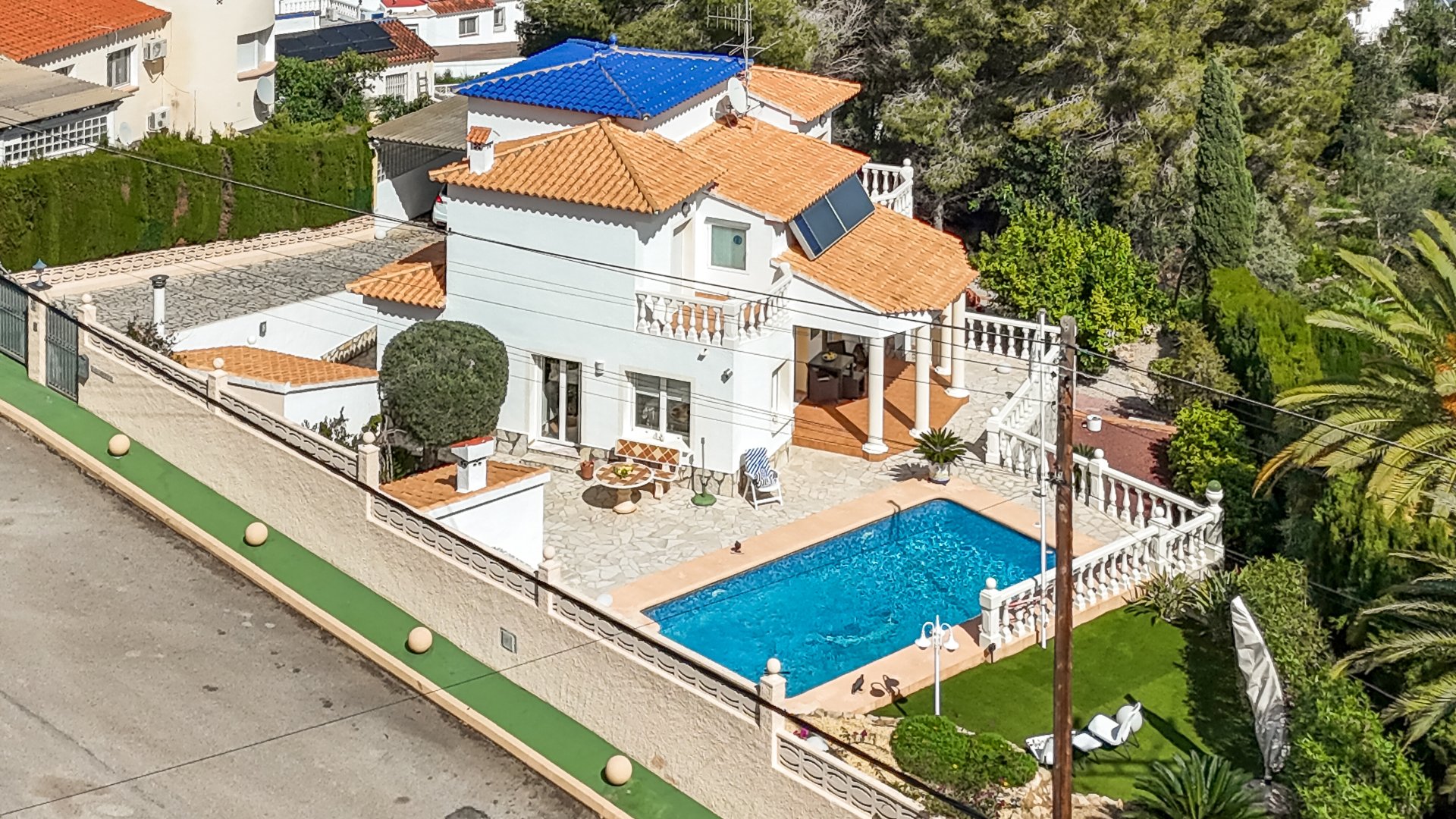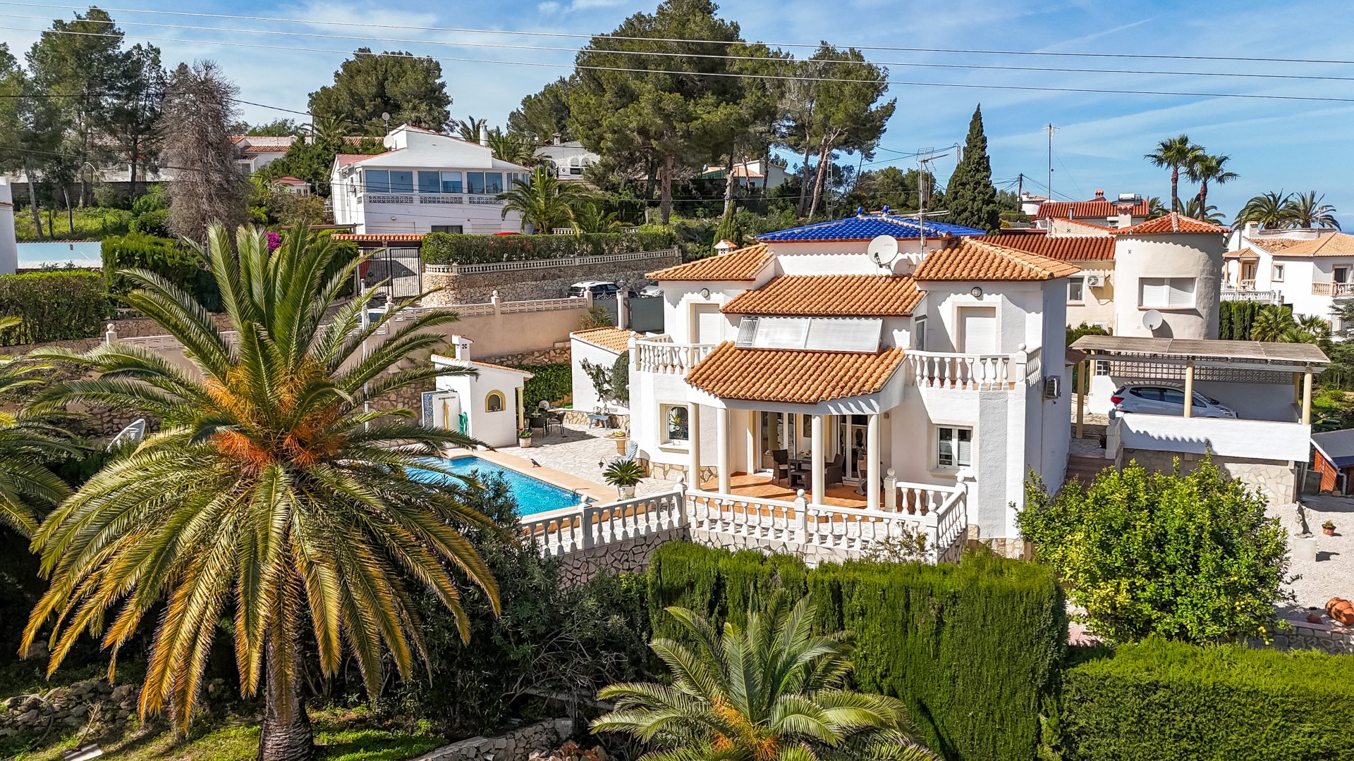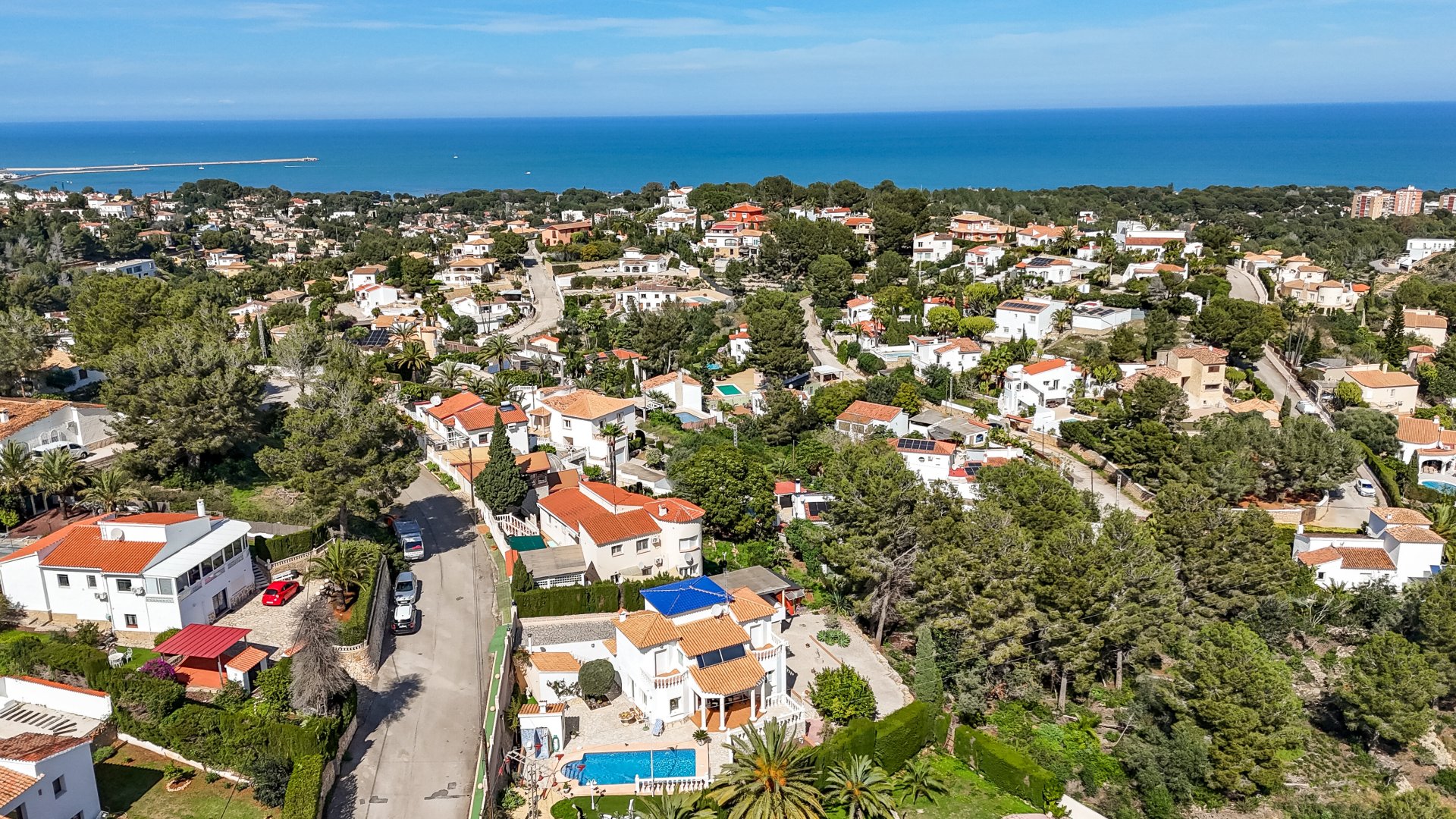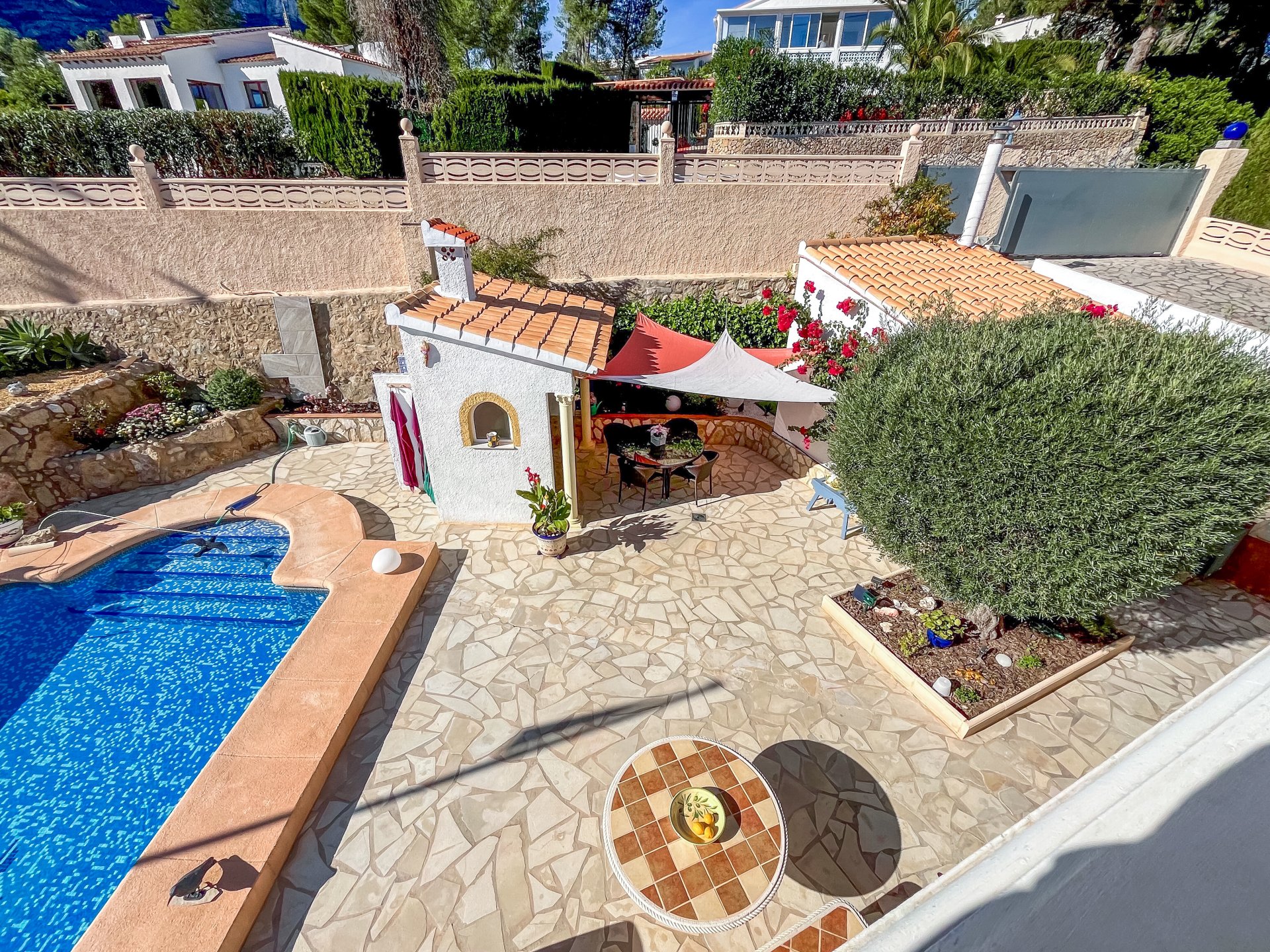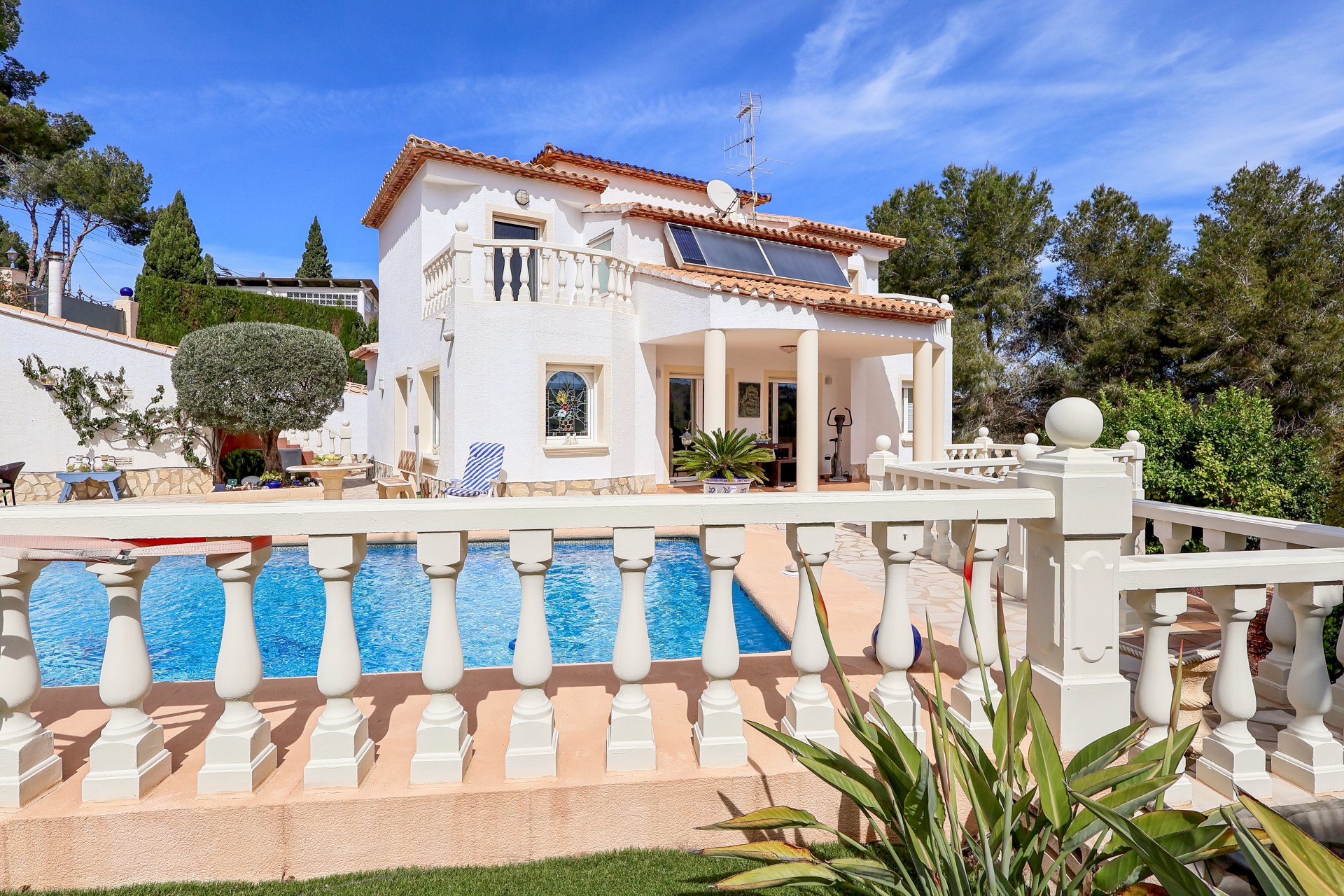 Wir bieten Ihnen diese sonnige Villa am Fuße des Montgo in Dénia an. 1999/2000 wurde diese elegante zweigeschossige Villa mit einer Wohnfläche von ca. 148 Qm auf einem sonnigen, ruhig gelegenen Grundstück von 998 Qm erbaut.