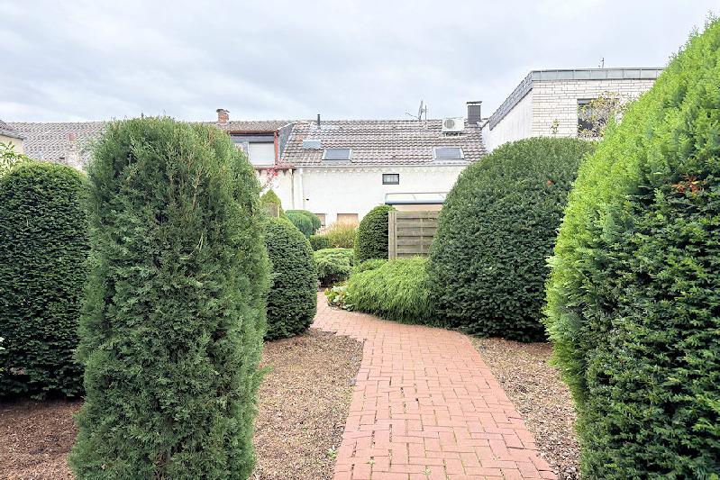 Hinter dem Haus befindet sich eine gepflasterte Terrasse sowie ein schön angelegter Garten mit gepflegten, Ziergehölzen und verschiedenen Gewächsen ein idealer Rückzugsort für entspannte Stunden im Freien.