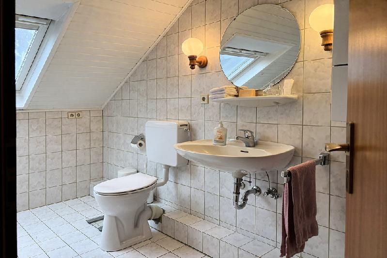 - Badausstattung: Dusche, Badewanne, Fenster im Badezimmer