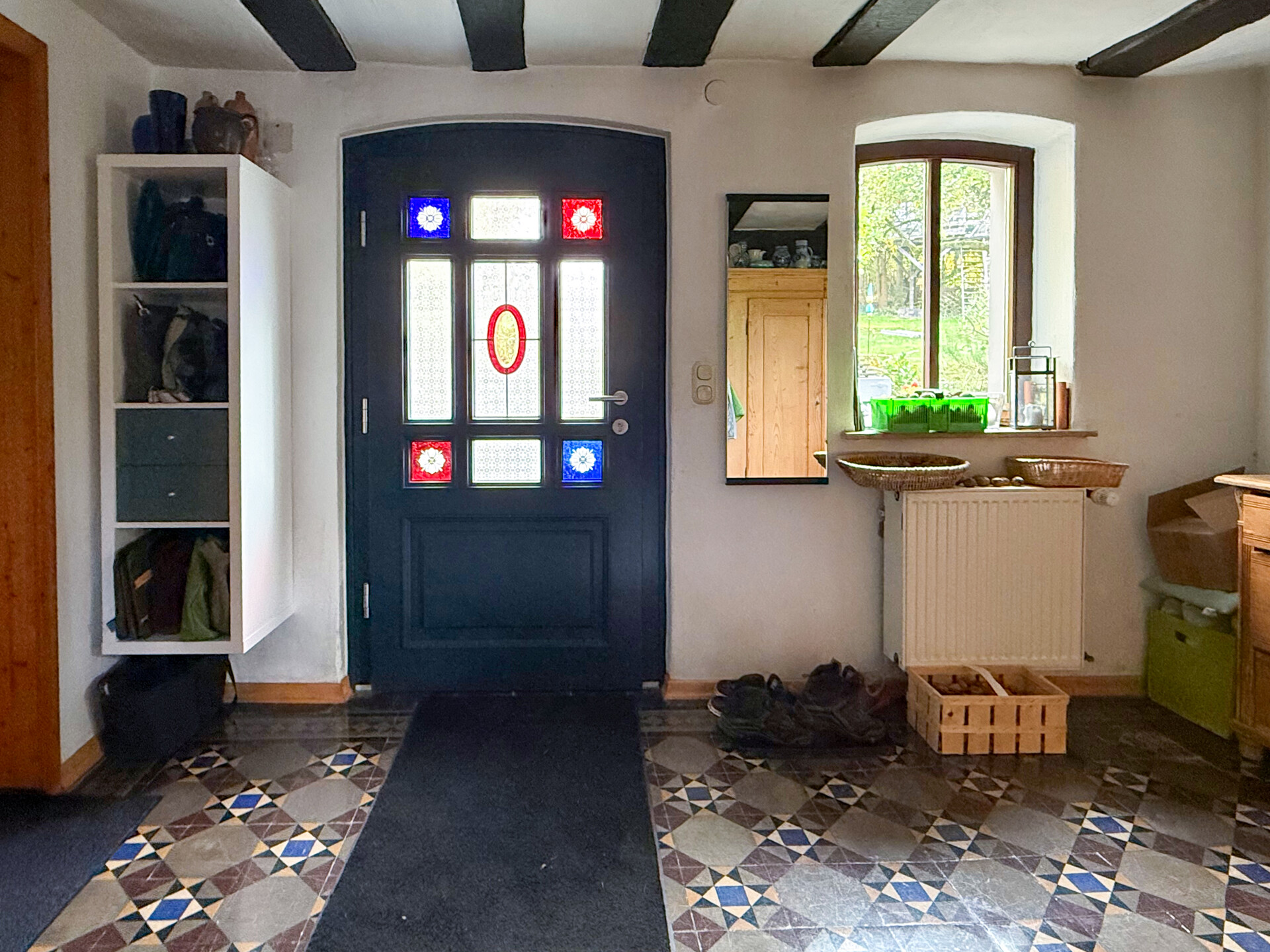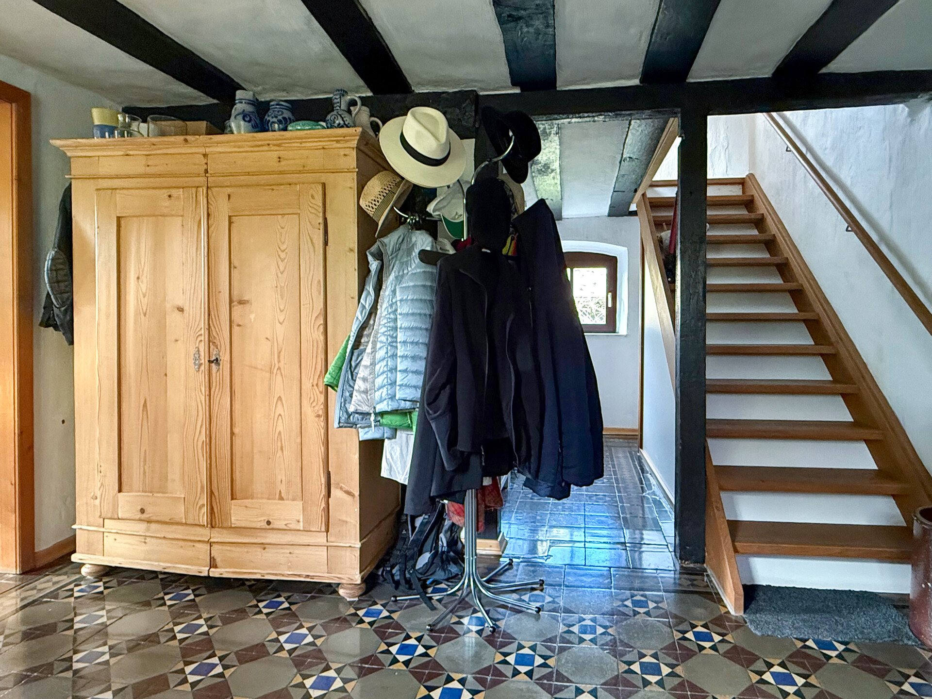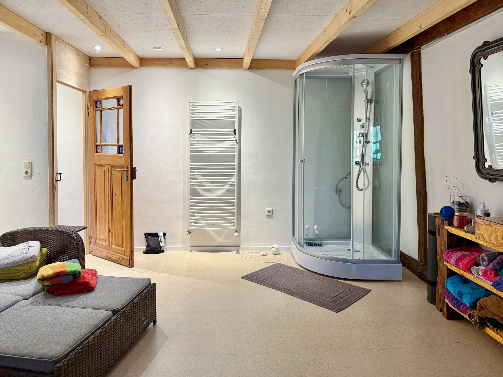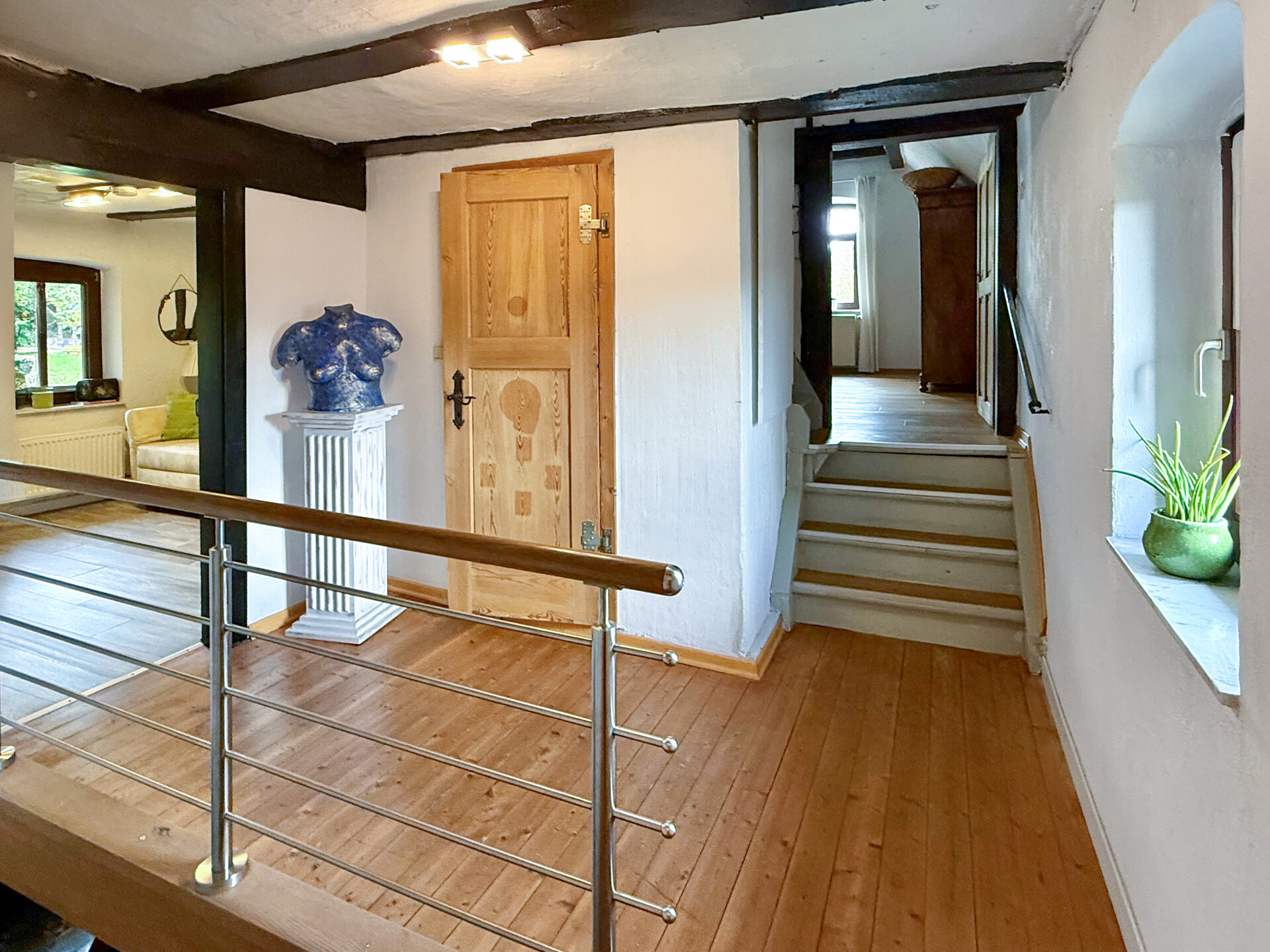 Dieses liebevoll modernisierte, ehemalige Fachwerkhaus mit Ursprung um 1800 vereint historischen Charme mit modernstem Wohnkomfort. Auf einem Grundstück von rd. 1.403 m² präsentiert sich das Anwesen – nach stetigen Sanierungen und Renovierungen von 1981 bis heute – in einem sehr guten Zustand! Im Erdgeschoss ist das Wohnen nahezu altersgerecht möglich: Neben dem gemütlichen Wohn-/Essbereich stehen eine hochwertig ausgestattete Küche, ein Wannenbad sowie ein Schlafzimmer oder Büro zur Verfügung. Im ersten Obergeschoss erwarten Sie ein eindrucksvolles Schlafzimmer mit Galerie, ein Kinderzimmer oder eine Ankleide, ein sep. WC sowie ein Wellness-/Saunaraum – perfekt für entspannte Stunden. Ein weiteres Zimmer befindet sich im Dachgeschoss. Insgesamt verfügt das Haupthaus über rd. 174 m² Wohnfläche. Ergänzt wird das Angebot durch vielfältige Nebennutzungen: Im Erdgeschoss der Scheune befinden sich Werkstatt, Heizung/Waschküche und ein Nebenraum, im Obergeschoss ein großzügiger Hobbyraum. Drei Kellerräume bieten zusätzlichen Stauraum. Zum Anwesen gehören außerdem ein Doppelcarport mit Wallbox und Abstellraum, ein Pavillon sowie das wunderschön angelegte Gartengrundstück – ein echtes Refugium, für alle, die Qualität und Gemütlichkeit schätzen!
