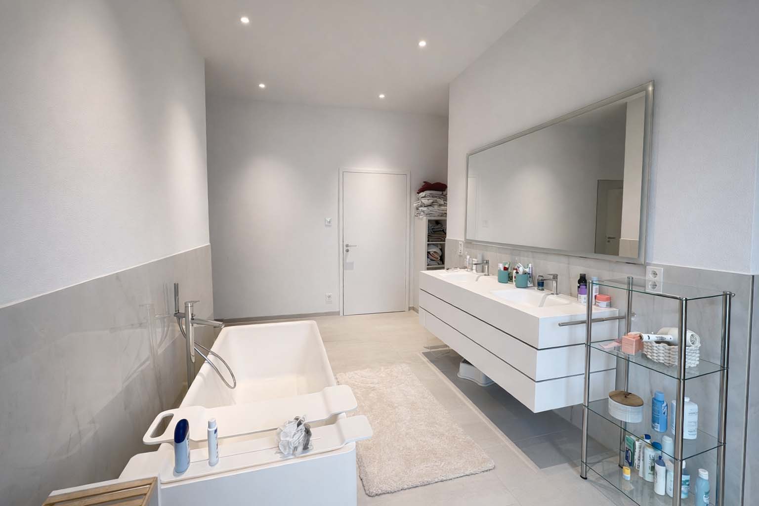 Auch technisch überzeugt die Immobilie: Photovoltaikanlage mit ca. 15 kWp und Huawei-Speicher, Buderus-Wärmepumpe, KNX-Smart-Home-System, Alarmanlage, dreifach verglaste Sondermaß-Fenster, Velux-Dachfenster mit Regensensor sowie Klimatisierung von Wohnbereich, Studio und Schlafzimmern. Hochsicherheits-Hauseingangstüren, Fertigbetondecken, zwei Satellitenanlagen und ein elektrisches Hörmann-Garagentor runden die hochwertige Ausstattung ab.