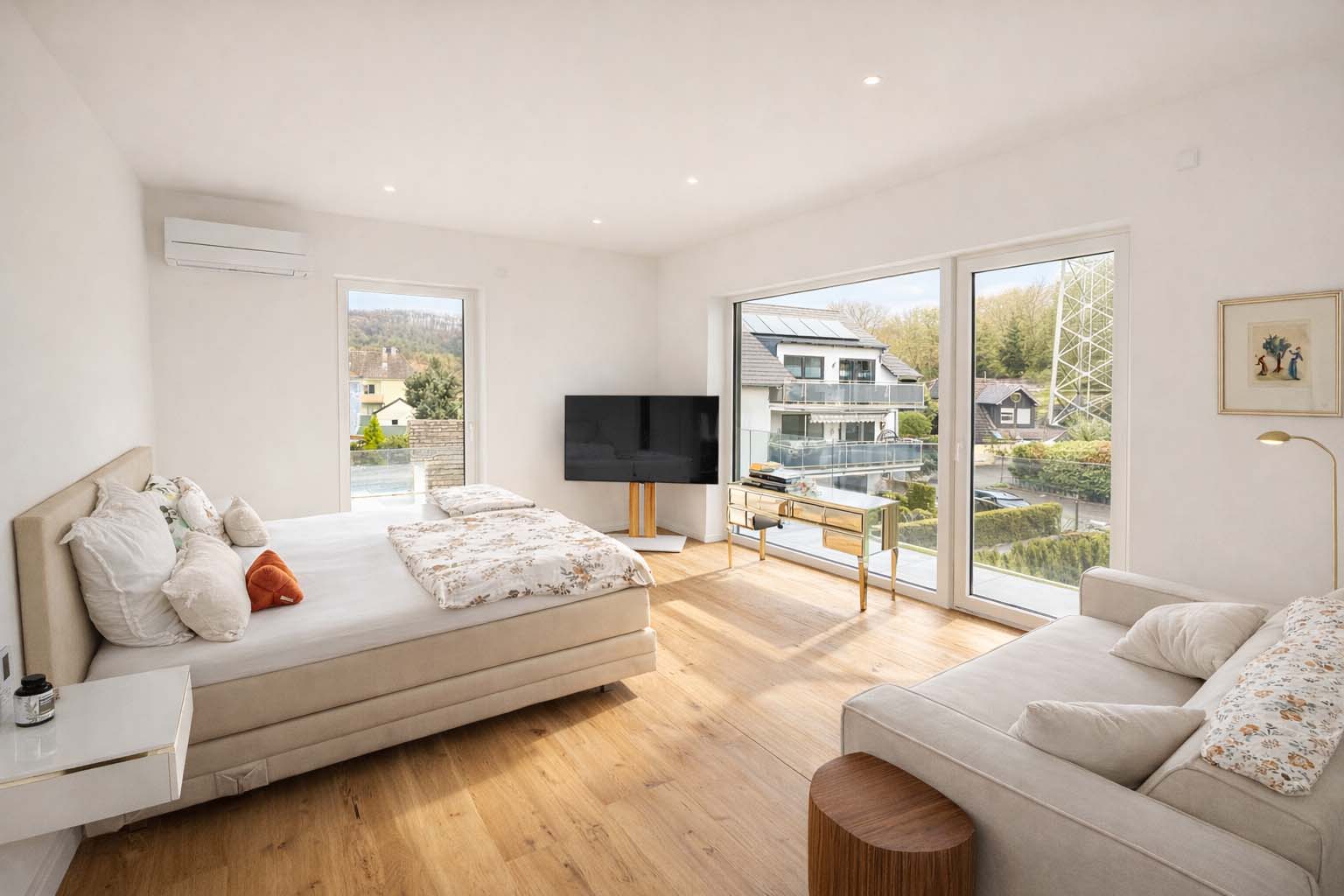 – Bodentiefe Fensterflächen, lichtdurchflutete Räume