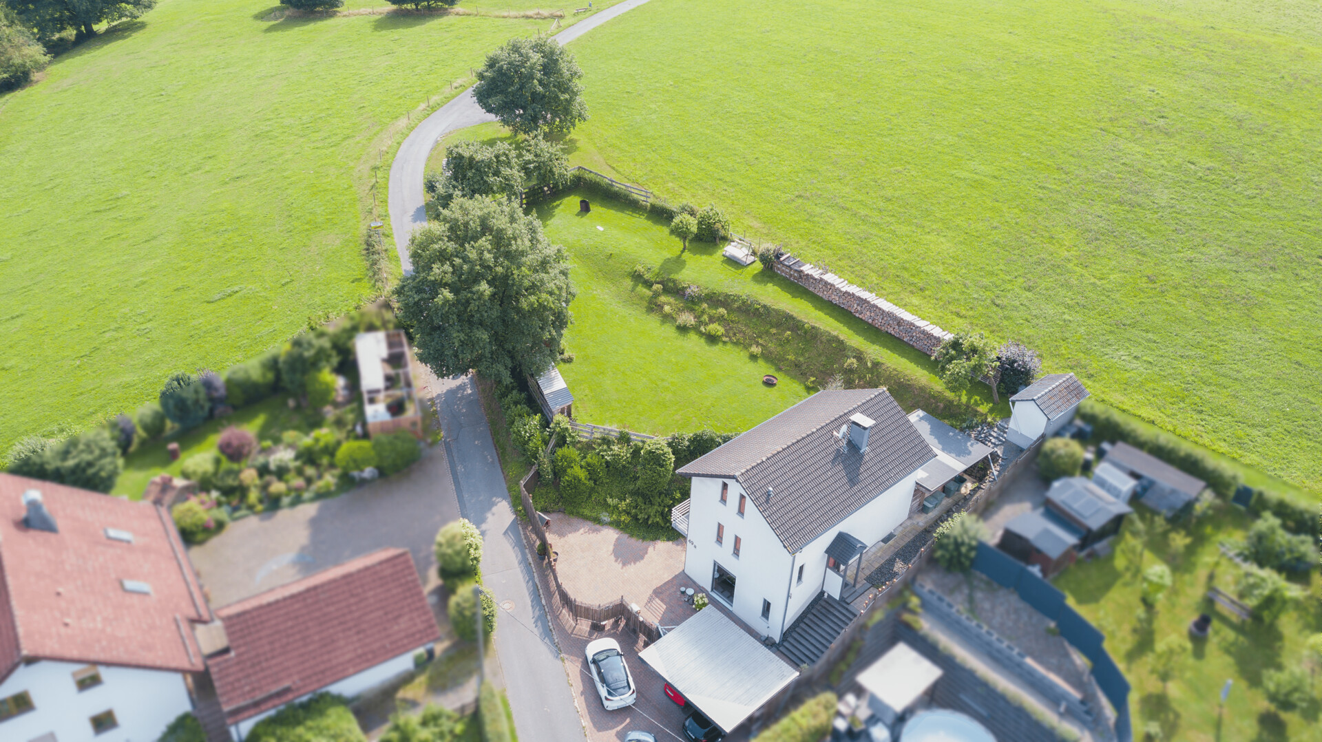 In herrlich ruhiger Lage, direkt am Feldrand, erwartet Sie dieses stilvolle Einfamilienhaus auf einem traumhaft großen Grundstück mit ca. 1.321 m² – ein echtes Paradies für Naturliebhaber und Familien.