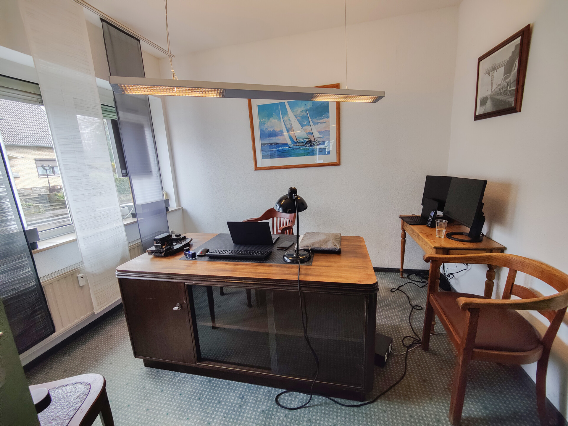 Im Erdgeschoss (ca. 87 m²) befindet sich eine etablierte Versicherungsgesellschaft, die als langjähriger Mieter gerne weiterhin im Gebäude verbleiben möchte. Der Gewerbeteil präsentiert sich in einem modernisierten Zustand und könnte ggf. auch zu Wohnzwecken dienen.