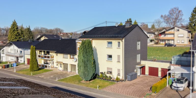Zu jeder Wohnung gehört eine Garage und ein PKW-Stellplatz. Das Grundstück von ca. 1.088 m² ist pflegeleicht angelegt.