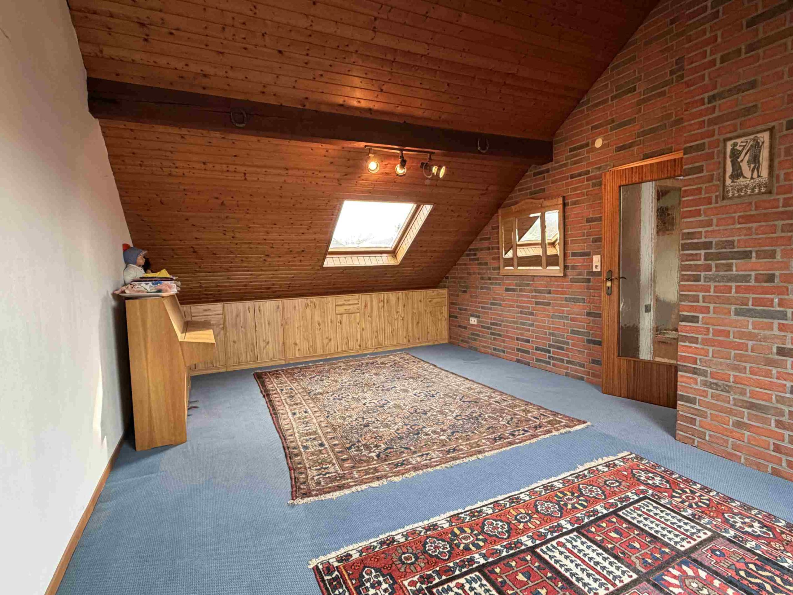 Das Objekt besticht durch eine grundsolide Bauweise und Ausstattung, lediglich die Öl-Zentralheizung müsste nach aktueller Gesetzeslage ausgetauscht werden, eine Umstellung z.B. auf Gas sollte problemlos möglich sein. Parkettboden im großen Wohnbereich, Travertin in Flur und Diele, im Ober- und Dachgeschoss liegt Teppichboden. Im Badezimmer im OG steht eine Badewanne mit Duschmöglichkeit zur Verfügung, in der Waschküche ist eine Übergröße Dusche als Alternative vorhanden. Isolierverglaste Alu- bzw. Kunststofffenster mit Rollladen (teils elektrisch betrieben).