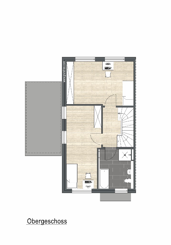 Über die hochwertige Stahlsystemtreppe mit komplett spiegelbildlichem Treppenlauf gelangen Sie in I. Obergeschoss. Hier erwarten Sie zwei Schlaf-/Kinderzimmer und ein großes, luxuriöses Wannen-Duschbad mit Tageslicht.