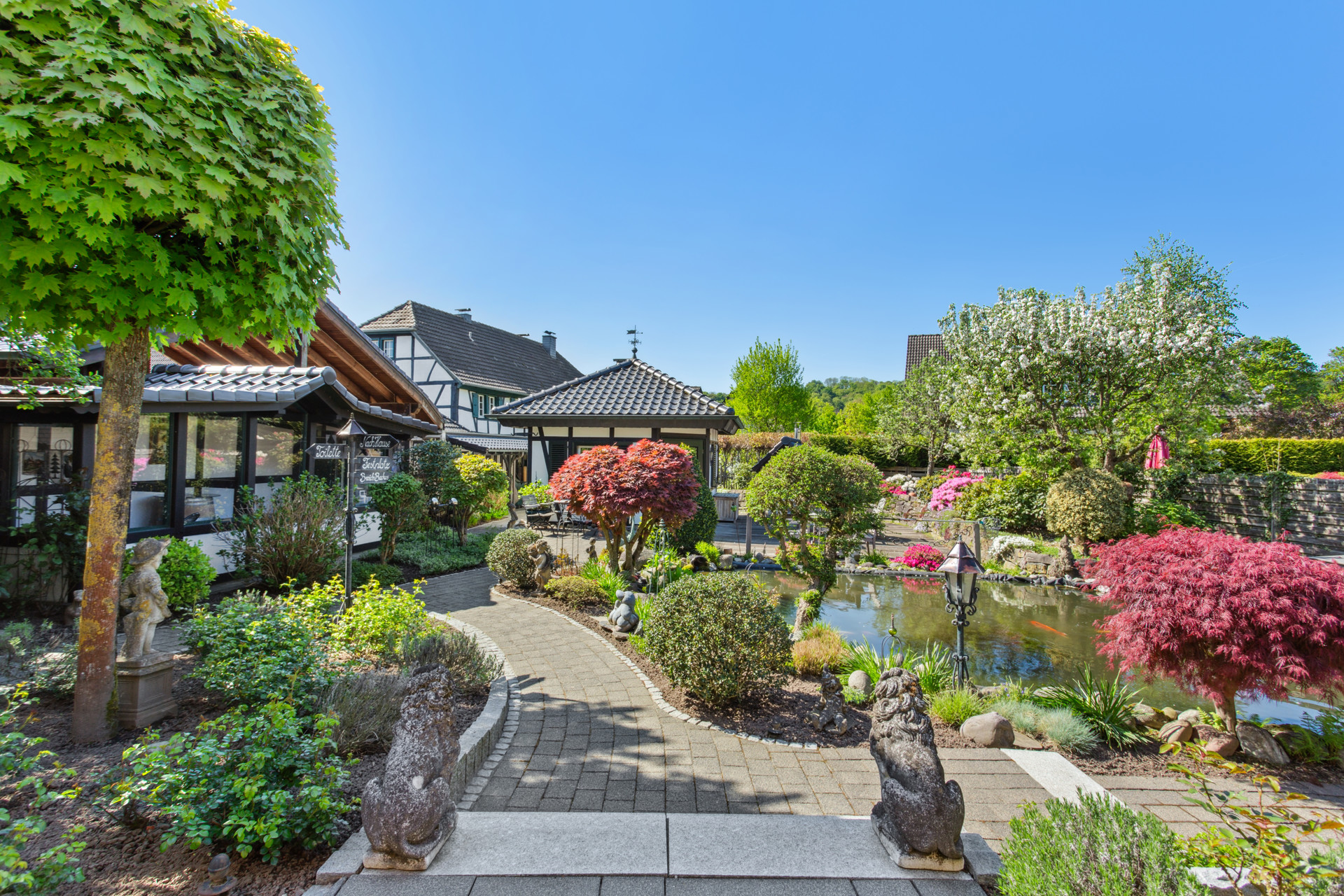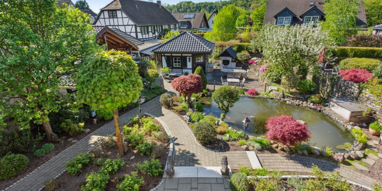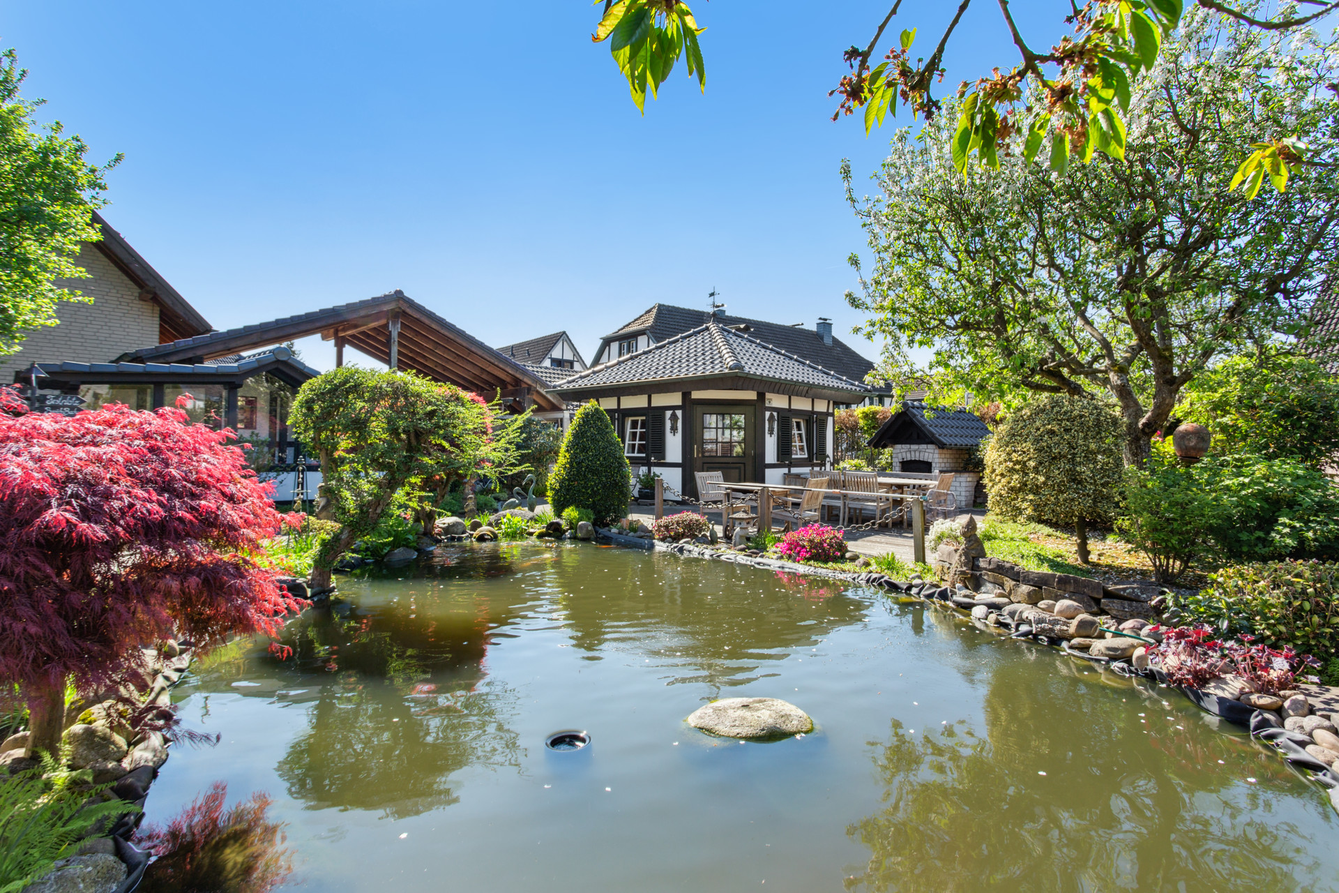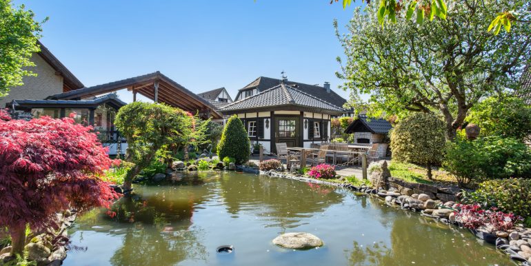 – Liebevoll angelegter Koi-Teich