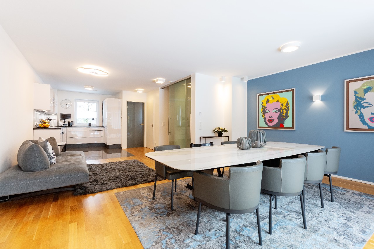 Großzügiger Wohn- und Essbereich mit offener Küche