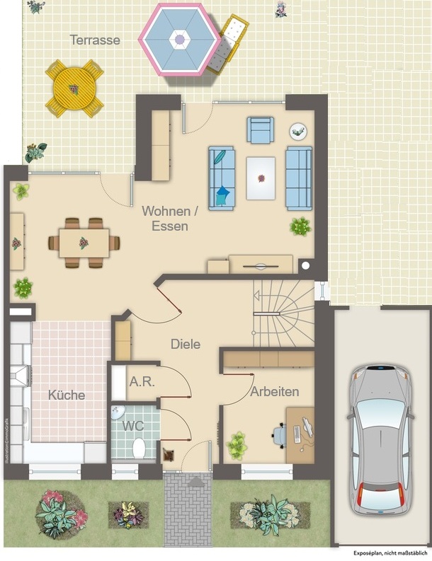 Die moderne und funktionelle Einbauküche ist bereits im Kaufpreis enthalten. Große Fensterflächen sorgen für helle, freundliche Räume, während elektrische Rollläden Komfort und Sicherheit bieten. Eine Fußbodenheizung mit Raumthermostaten ist eine weitere Annehmlichkeit in dieser Immobilie. Das 616 m² große Grundstück ist ein echtes Highlight: Mit einer Breite von ca. 17,5 m und einer Tiefe von ca. 43 m eröffnet sich ein Garten zum Spielen, Toben, Gärtnern, Grillabende, Kindergeburtstage oder einfach ein Glas Wein in der Abendsonne.