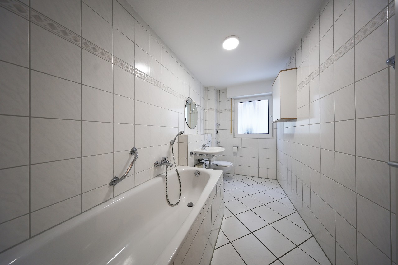 Die Wohnung verfügt über drei gut geschnittene Zimmer mit vielseitigen Nutzungsmöglichkeiten. Sämtliche Wohnräume sind durchgehend hell gefliest, was für ein freundliches Erscheinungsbild sowie einen geringen Pflegeaufwand sorgt.