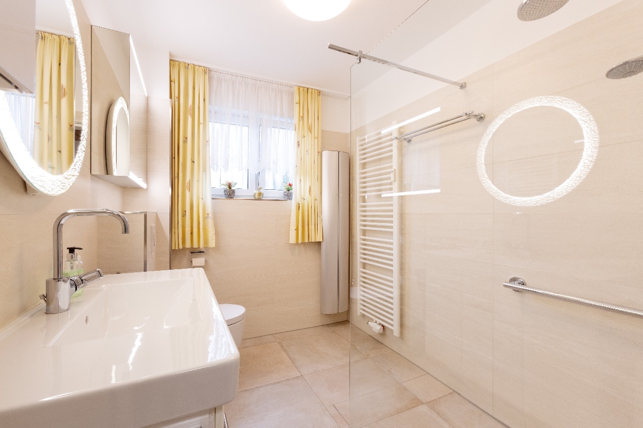 Erdgeschoss: helles, modernes Duschbad aus 2021