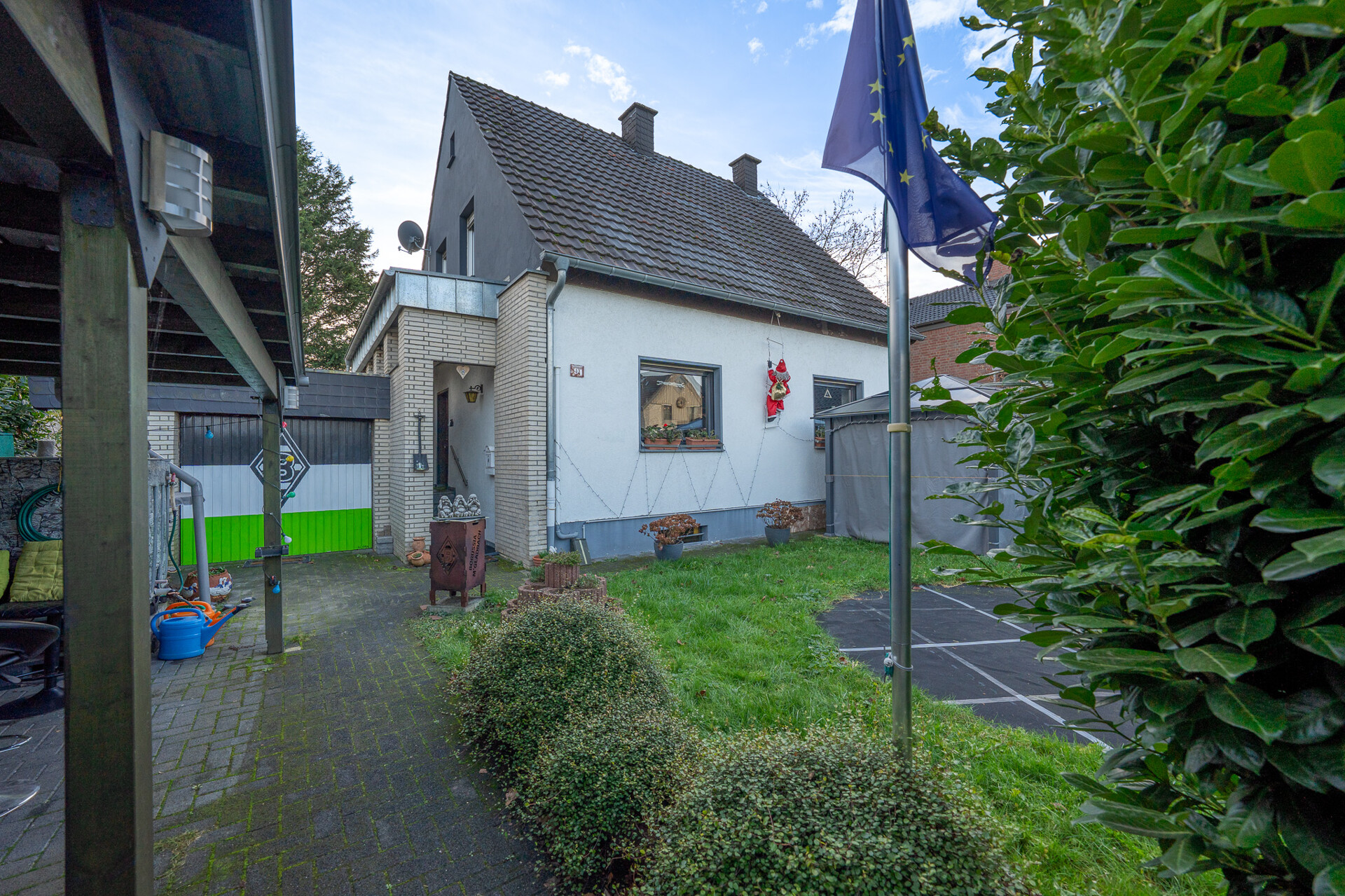 Auf einem ca. 1.224 m² großen Grundstück genießen Sie Gartenflächen, Privatsphäre und zwei Carports. Das Vorderhaus ist derzeit für 720 € kalt vermietet – ideal auch für Investoren.