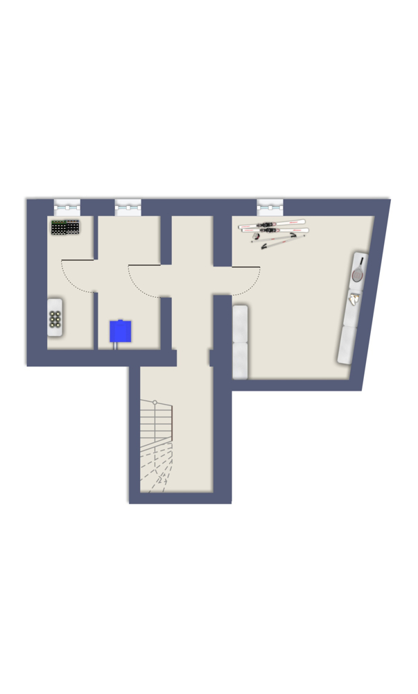 Beide Wohnungen sind in sich nicht abgeschlossen, d. h. es gibt keine Wohnungseingangstür sondern ein offenes Treppenhaus.